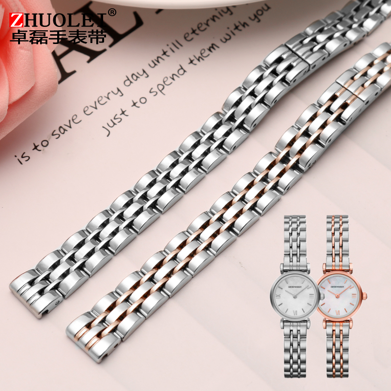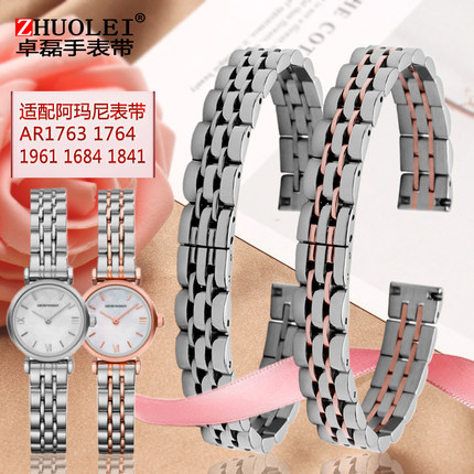适配阿玛尼AR1763 1764 1961 1684 1841精钢手表带小号女表链10mm