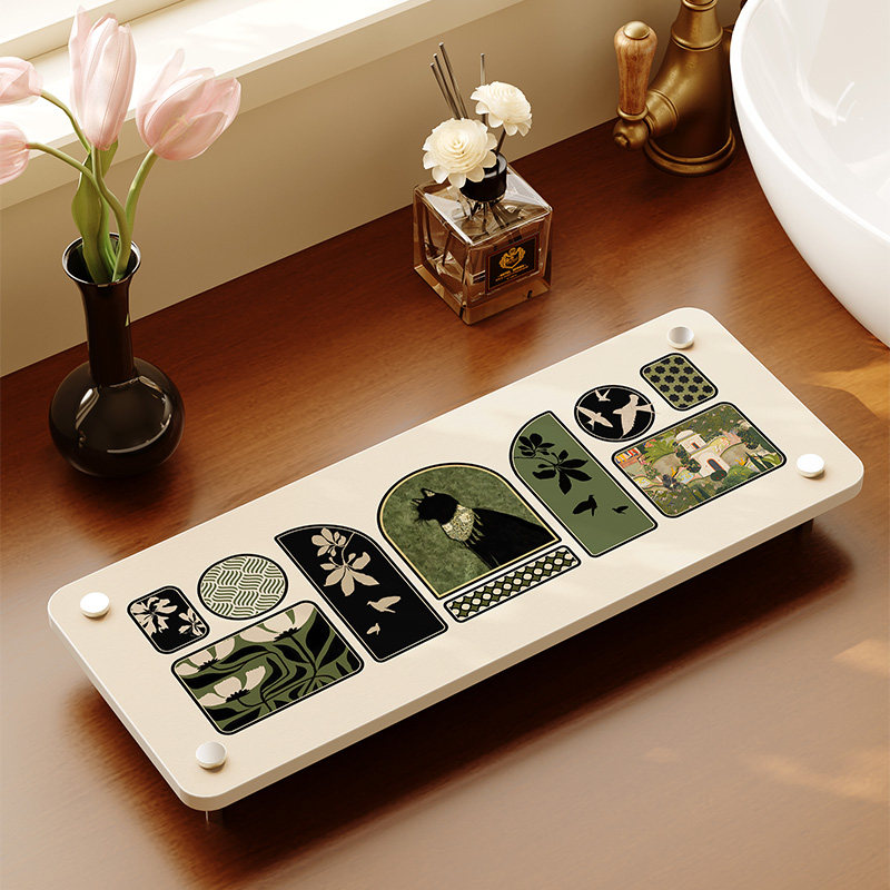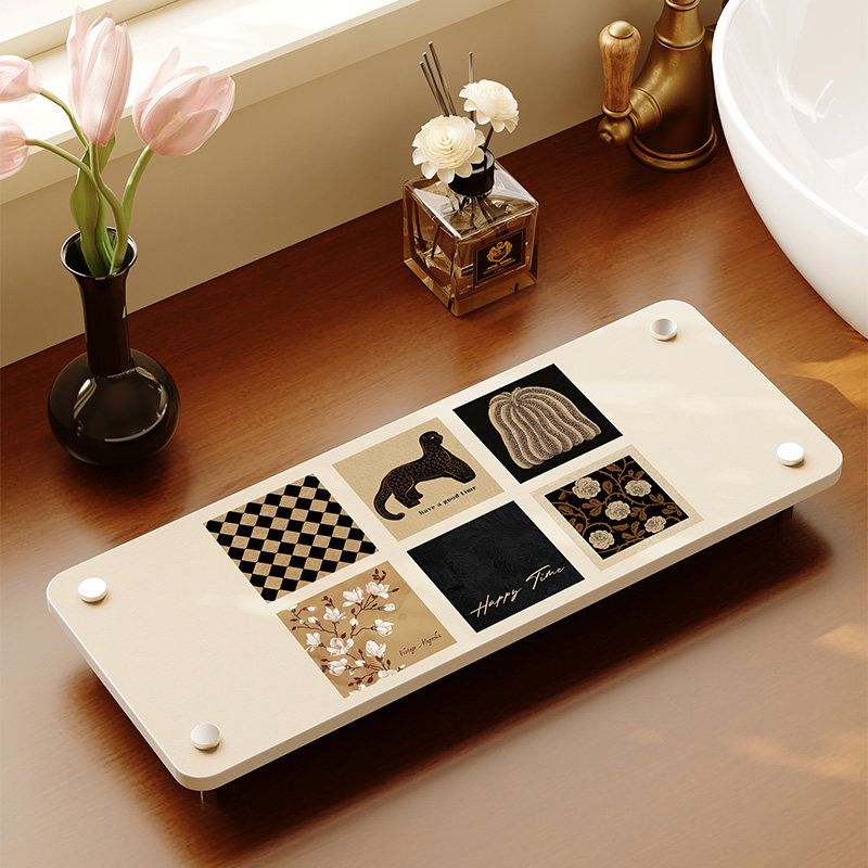 中古风洗手台置物架硅藻泥吸水台面垫卫生间高级感洗漱收纳架杯架