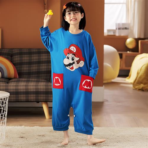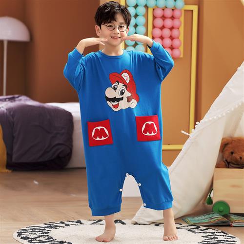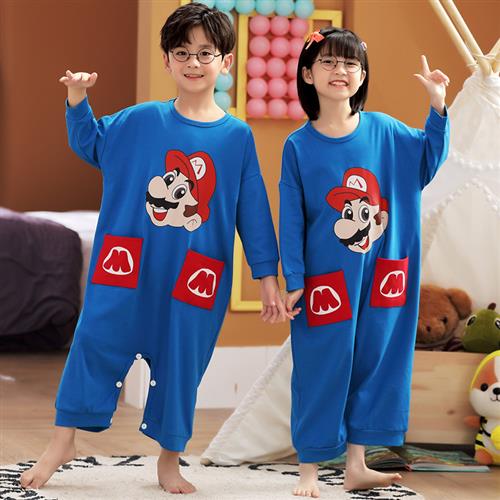儿童睡衣男童女童夏季春秋款连体防踢套装可爱纯棉长袖大童家居服