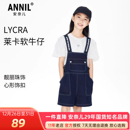 安奈儿短裤牛仔背带裤休闲