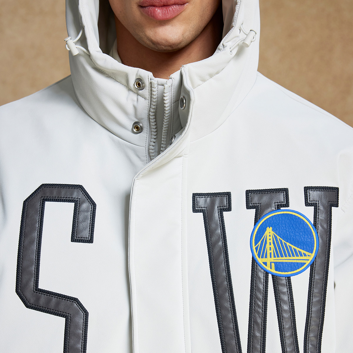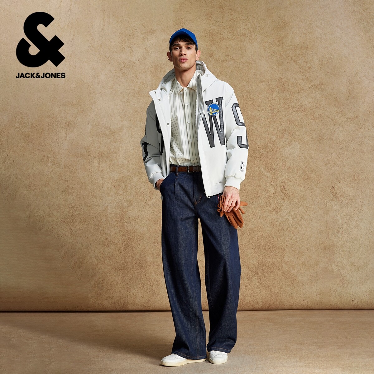 绫致杰克琼斯NBA联名款勇士队宽松百搭日常舒适潮刺绣连帽羽绒服
