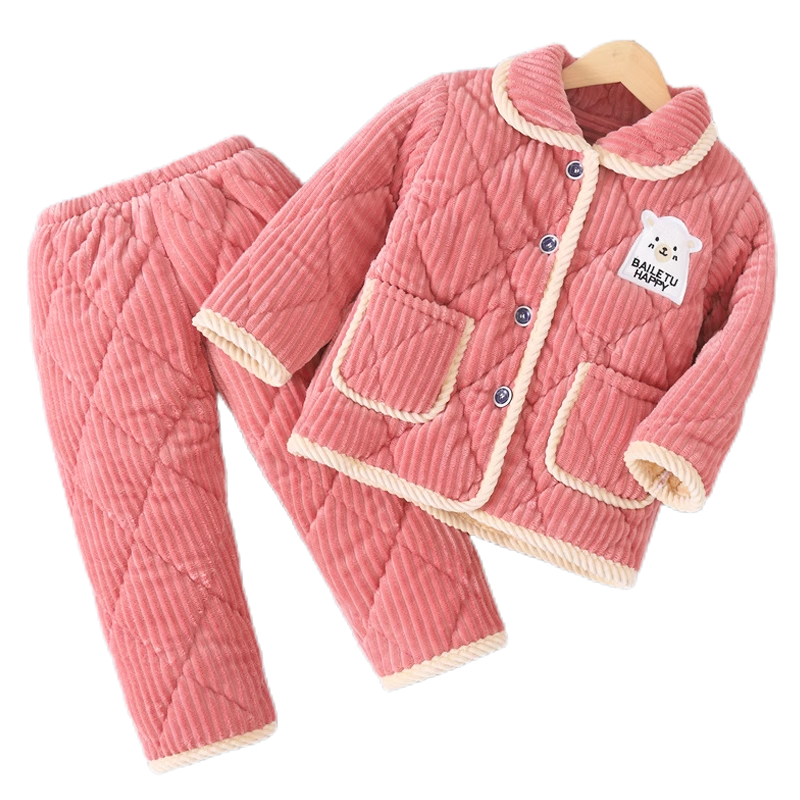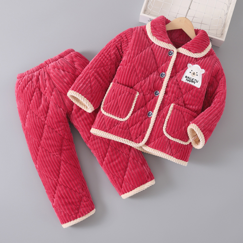 冬季女童女孩夹棉珊瑚绒家居服儿童法兰绒睡衣男童宝宝加厚款套装