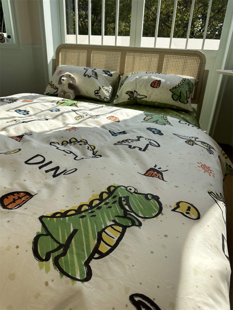 趣味涂鸦恐龙纯棉床上四件套全棉