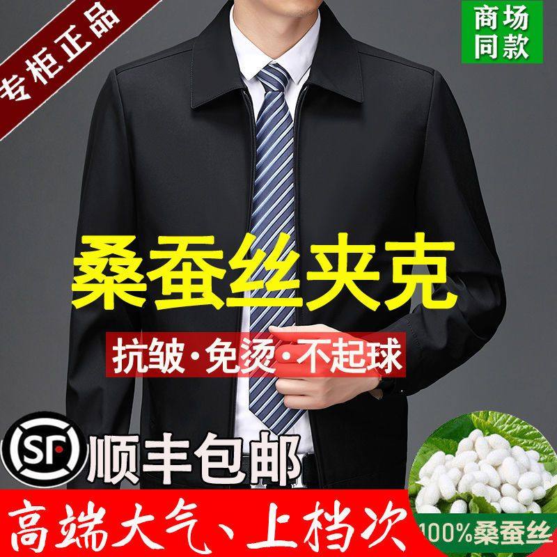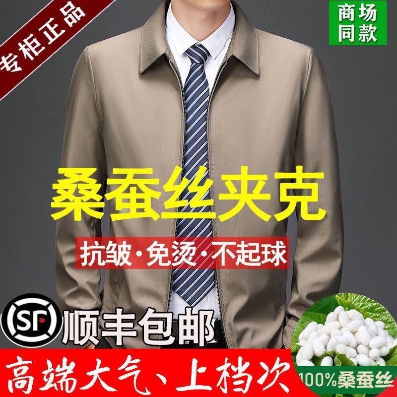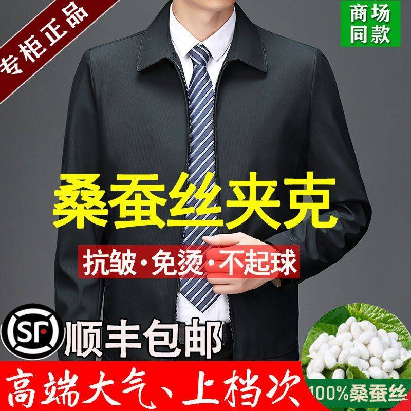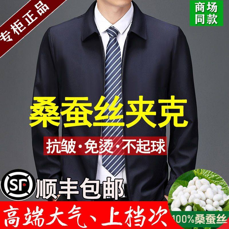 特价正品断码特价春秋装桑蚕丝翻领夹克衫外套男商务休闲高档上衣