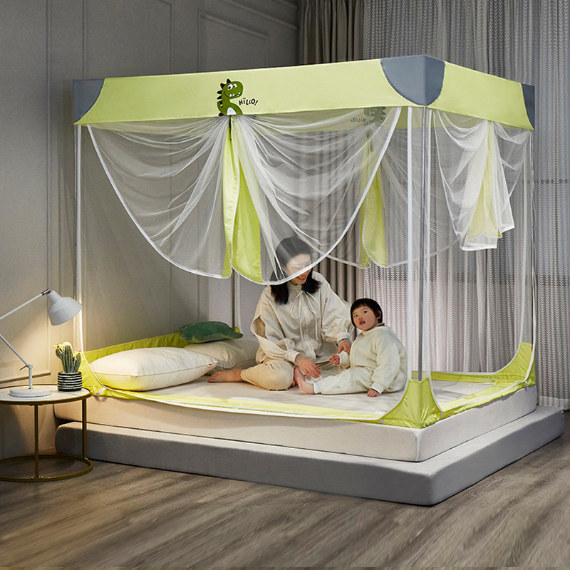 蚊帐三开门防摔儿童宝宝1.5拉链1.8m床家用卧室加厚支架固定纹账