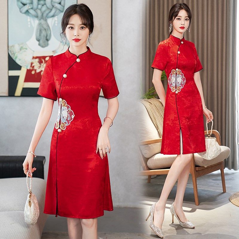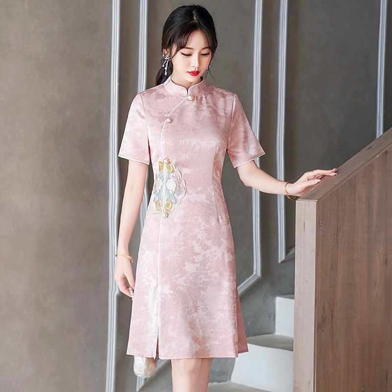 大码女装蕾丝刺绣遮肚显瘦连衣裙2023夏装新款中国风改良旗袍裙子