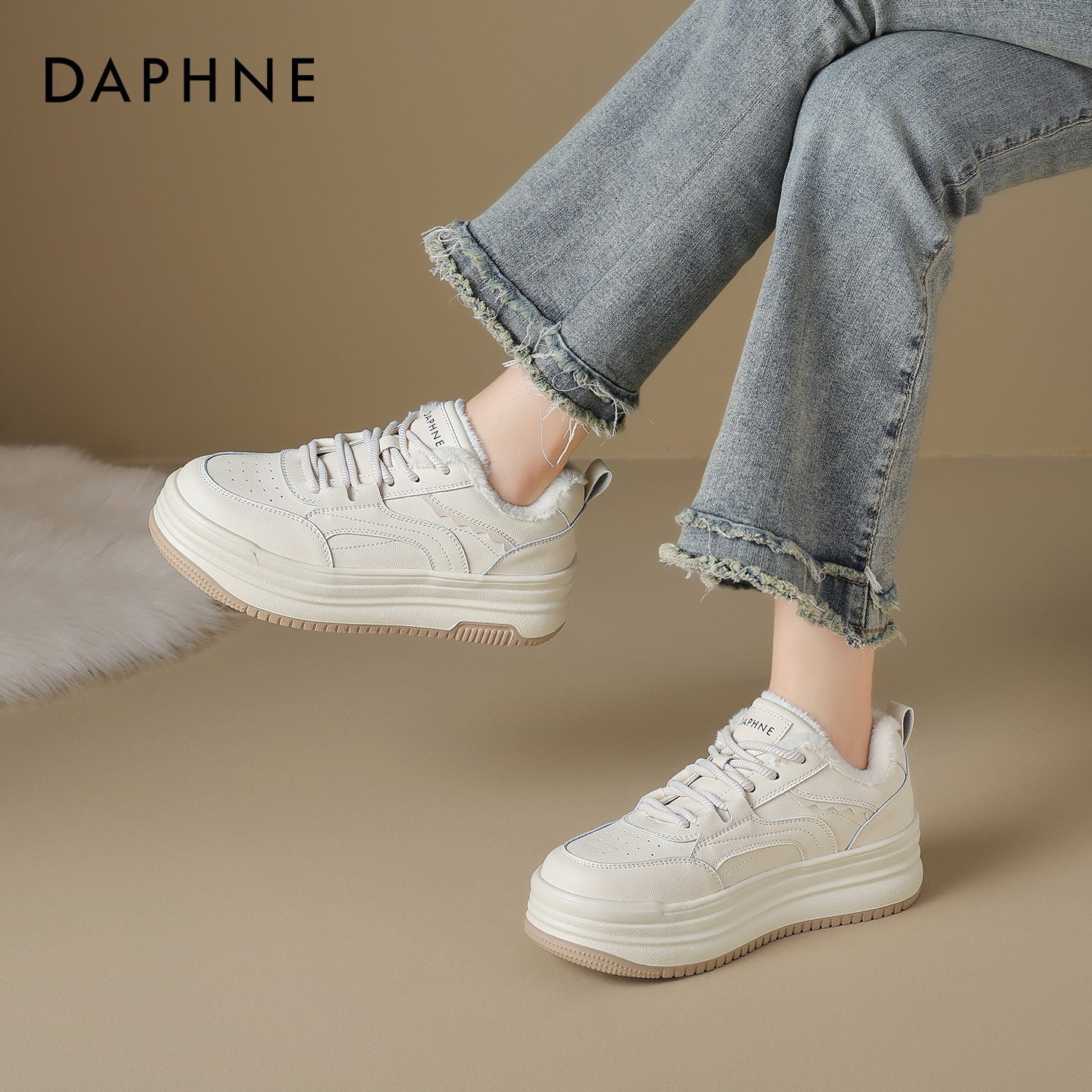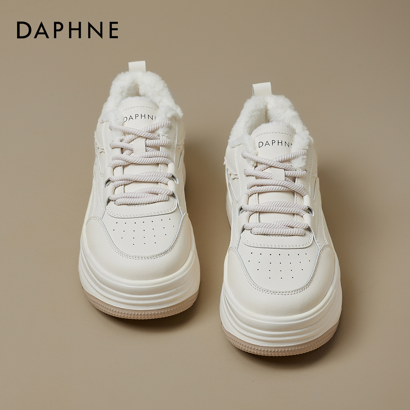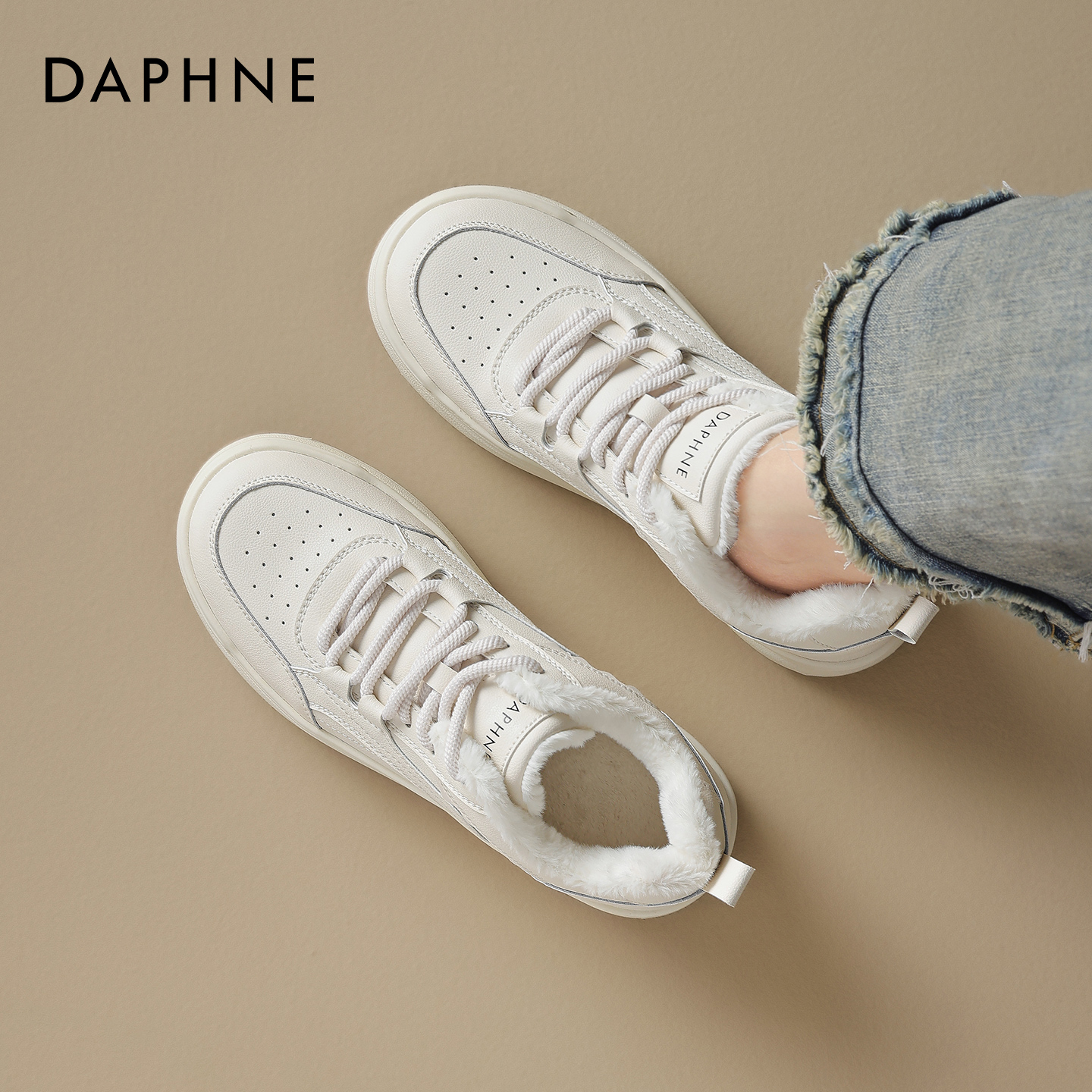 达芙妮加绒小白鞋女秋冬板鞋2025新款运动保暖棉鞋厚底加厚雪地靴