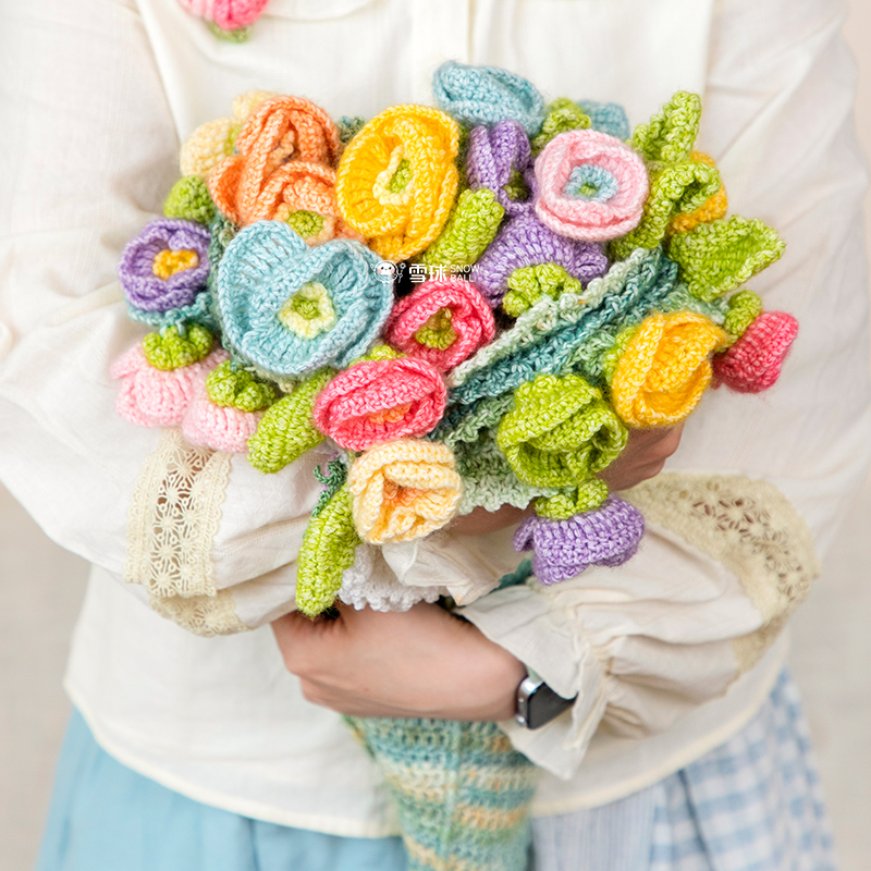 虞美人向阳花雪球沁柔花束毯材料包diy手工编织礼物毛线钩针盖毯