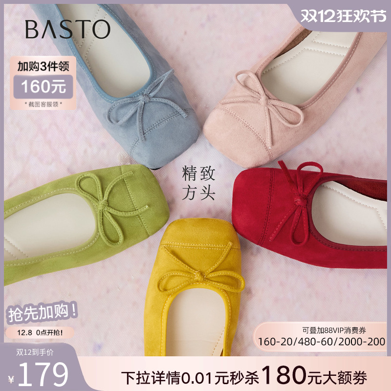 【小樱桃】百思图25秋新款红色单鞋浅口船鞋瓢鞋平底女鞋B8013CQ5