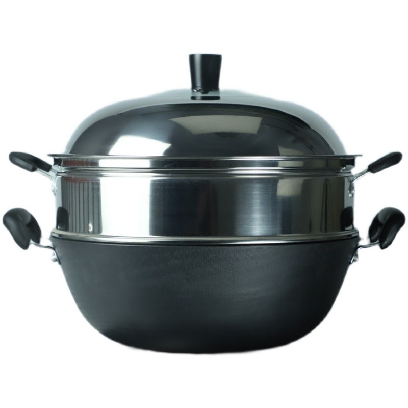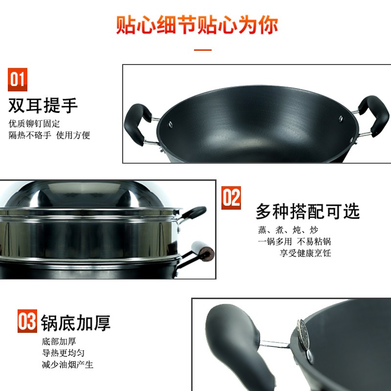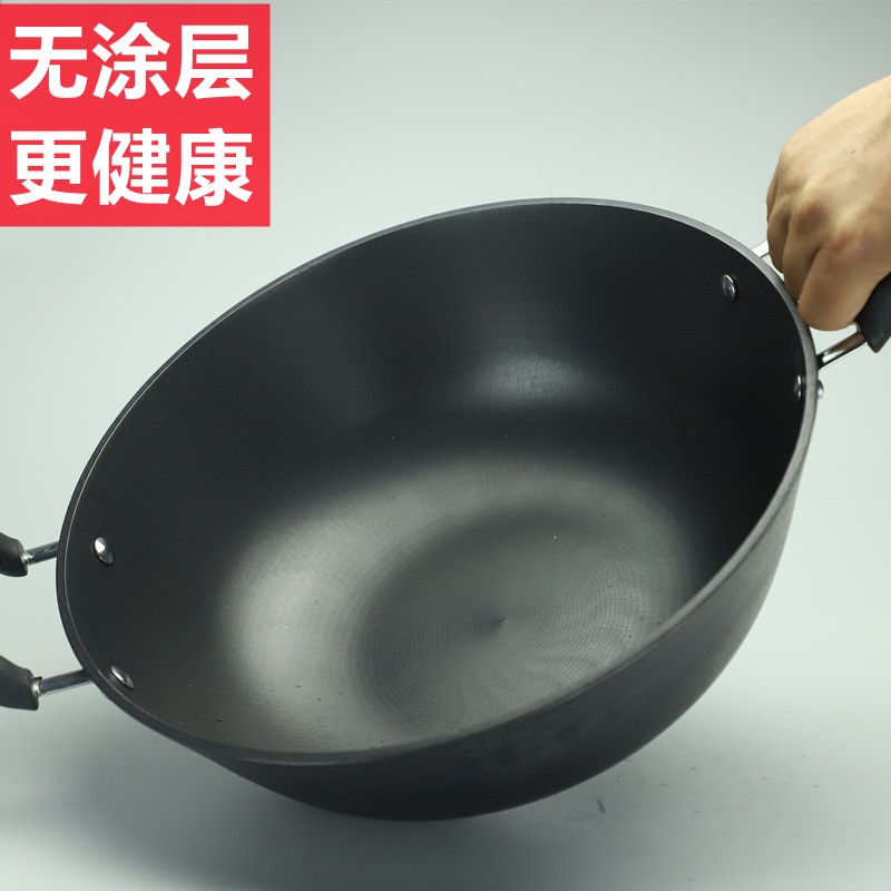 加厚铸铁炖锅老式铁锅家用双耳无涂层大号炖汤锅中式生铁平底蒸锅