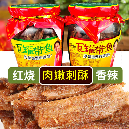 微湖渔郎瓦罐带鱼410g红烧味下饭菜即食香辣味海鲜零食熟食玻璃瓶