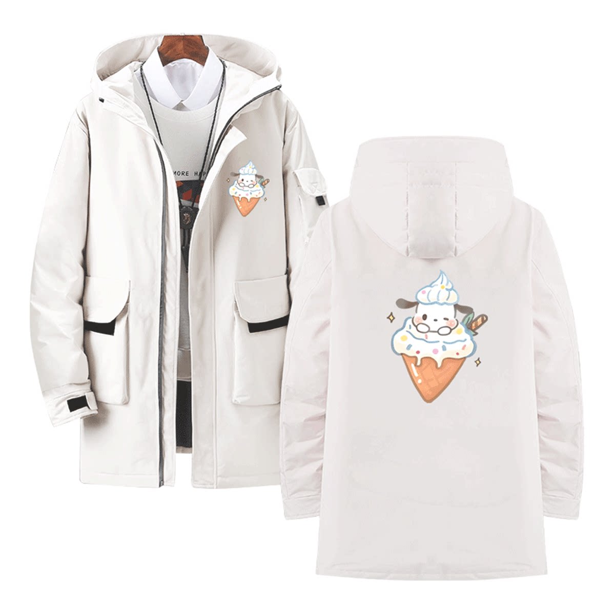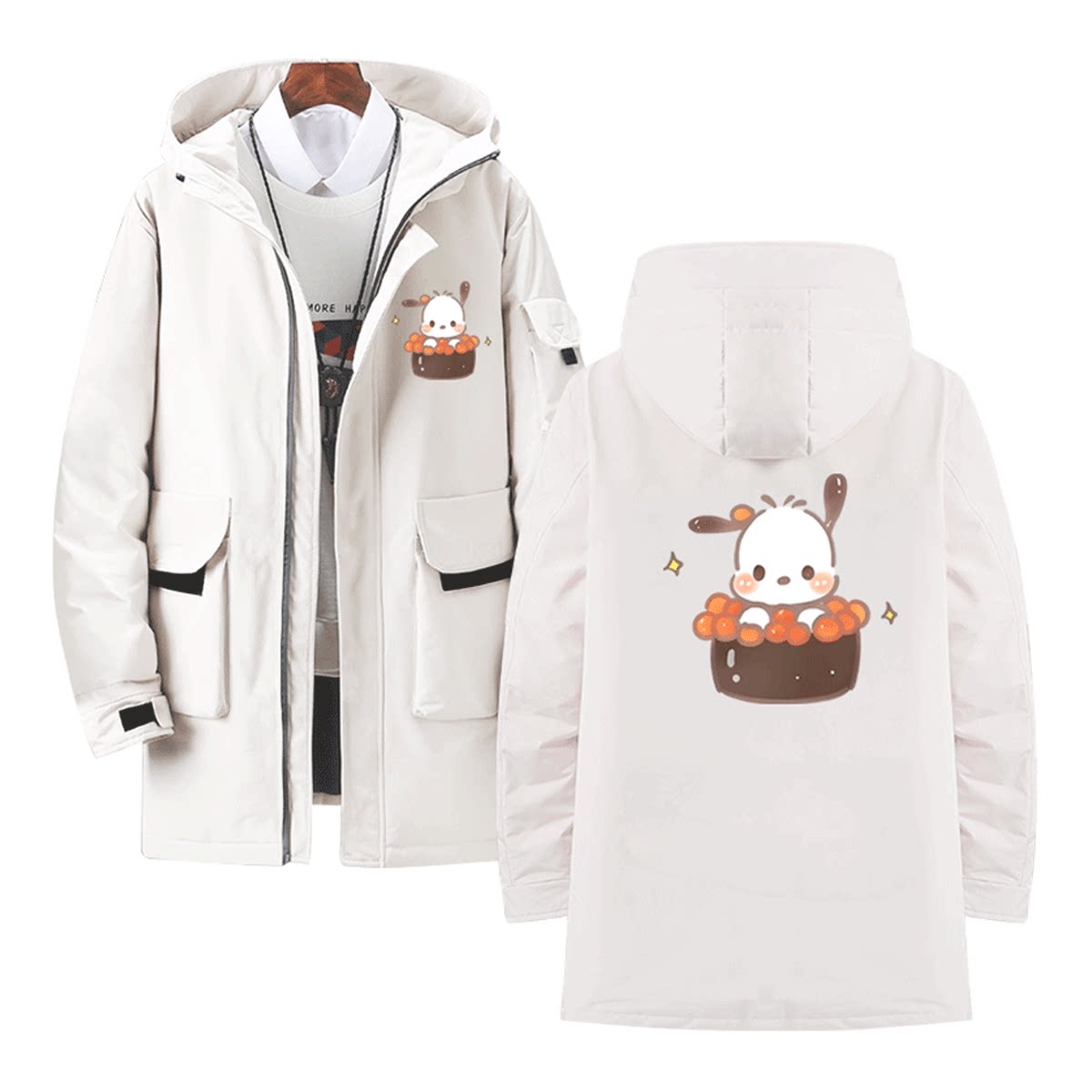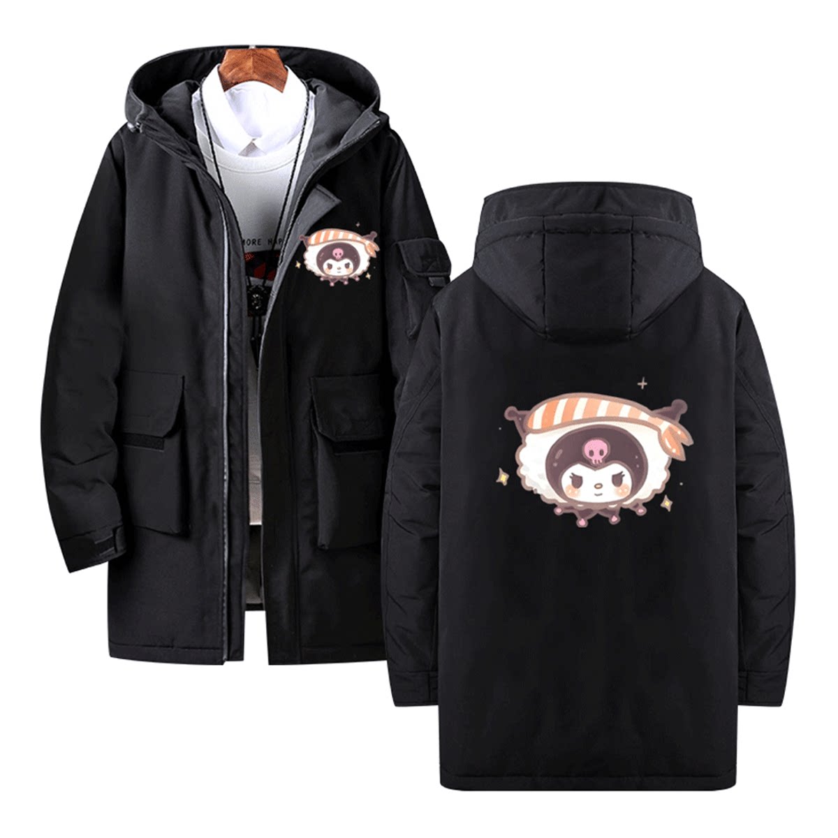 日系寿司三丽鸥玉桂狗库洛米卡通情侣动漫联名可定制中长款羽绒服