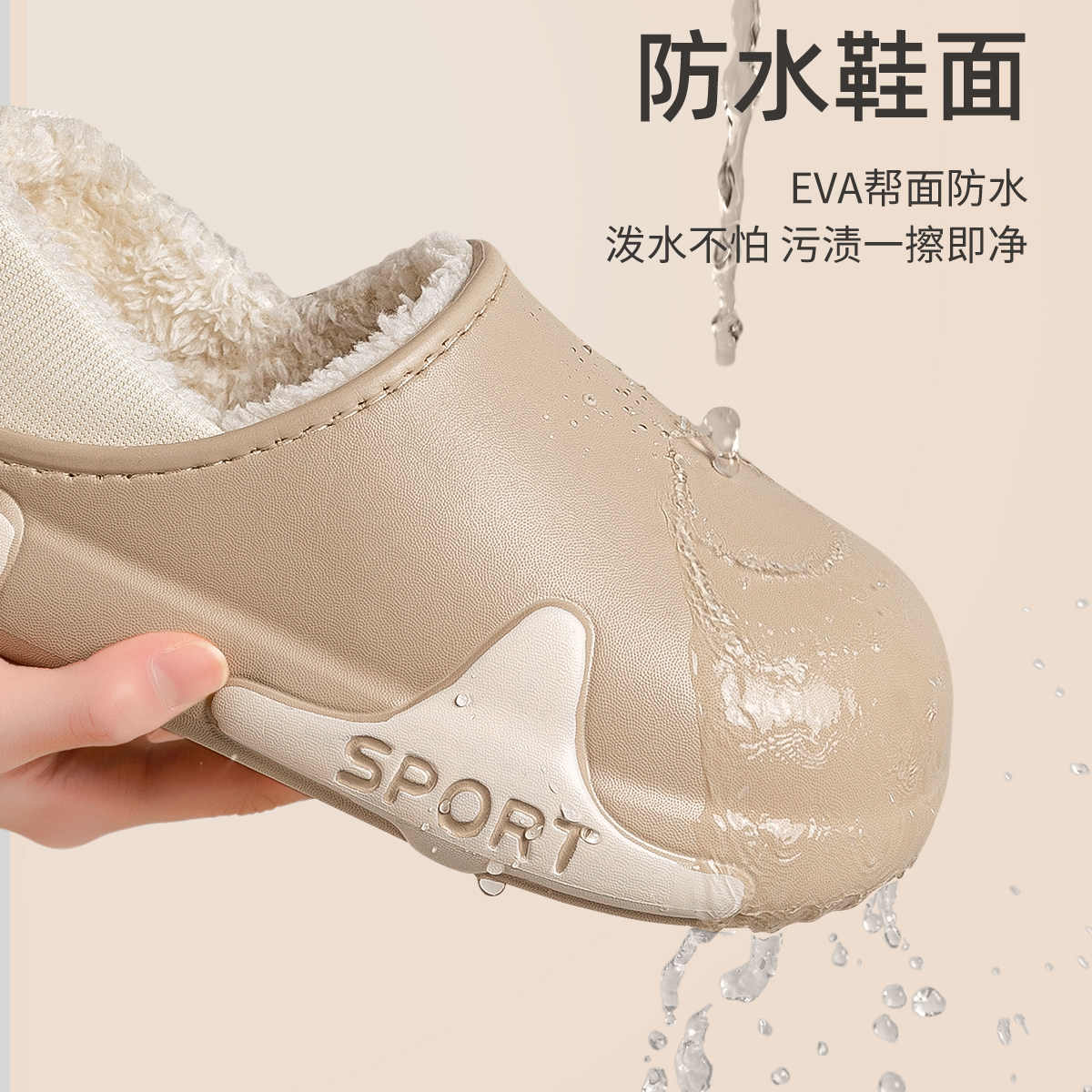 洁丽雅防水棉拖鞋男士冬季新款运动可外穿棉鞋加绒保暖防滑棉拖鞋
