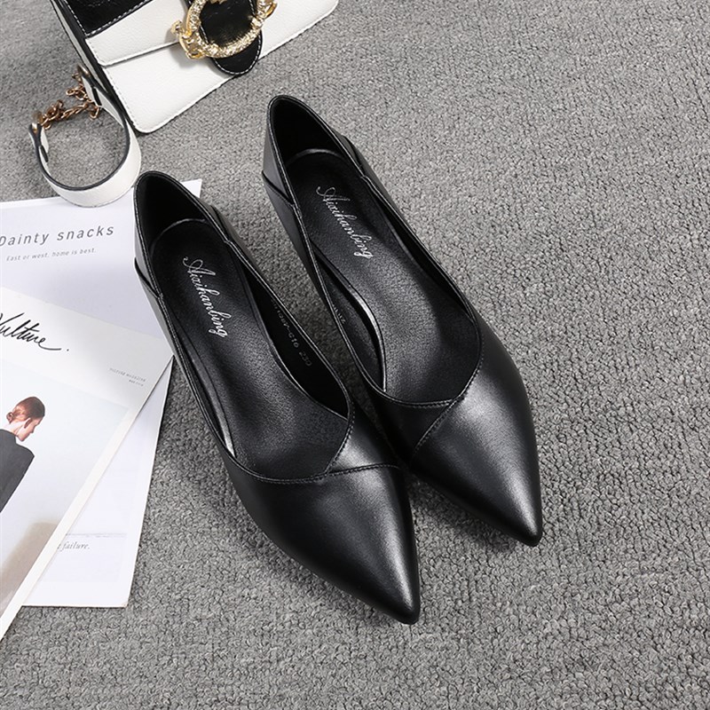 2021款酒杯跟尖头黑色高跟鞋软皮职业工作鞋女正装真皮秋礼仪单鞋
