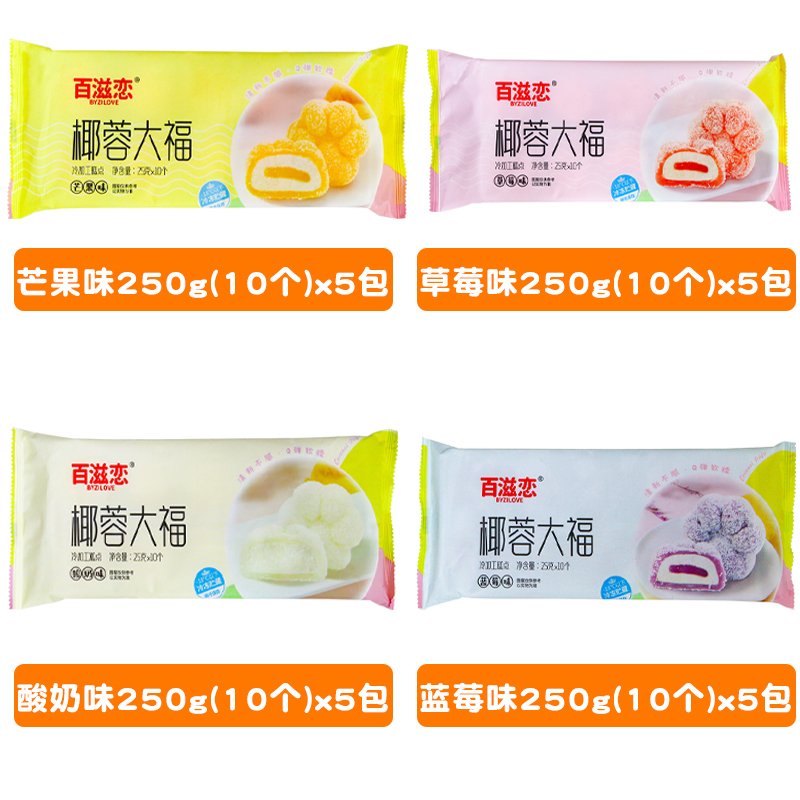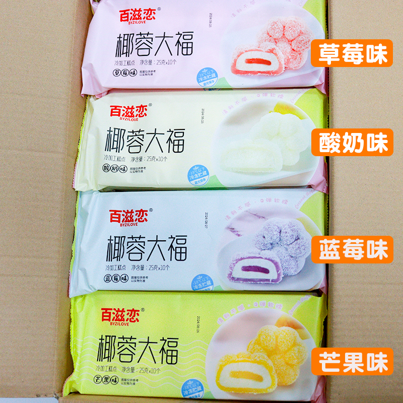 整箱椰蓉大福猫爪大福混合装雪媚娘糯米糍解冻即食网红下午茶点心