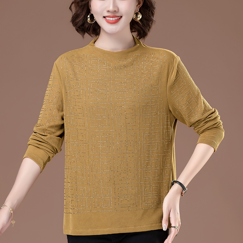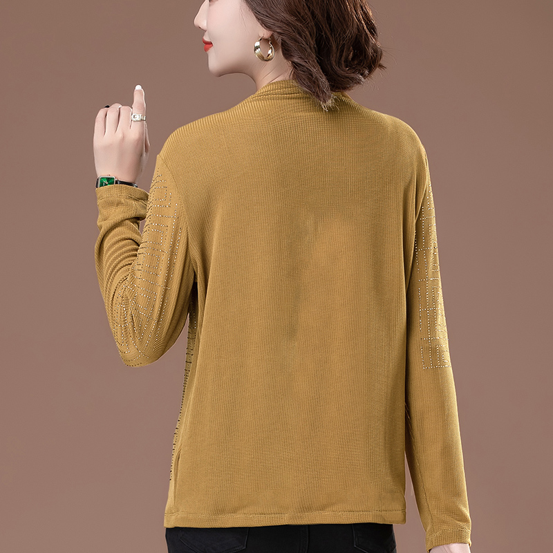洋气中老年妈妈网纱T恤女长袖新款高端大码上衣贵夫人品牌打底衫