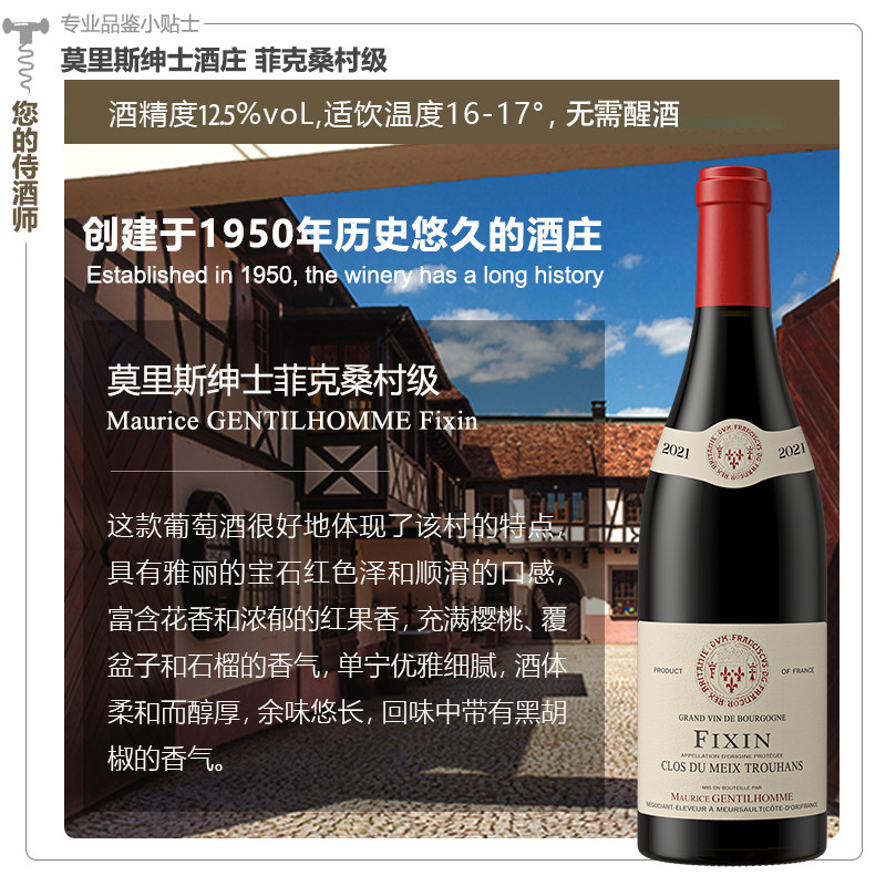 法国勃艮第莫里斯绅士酒庄菲克桑村级黑皮诺干红马年送礼红酒礼盒