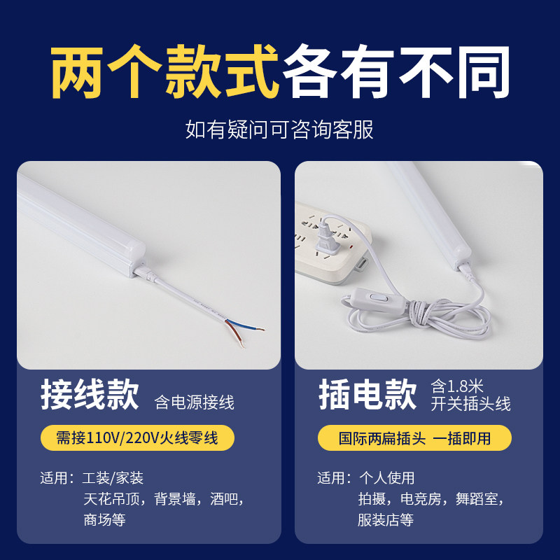 t5彩色灯管一体化led红紫蓝粉红有色日光灯装饰光管霓虹T8长条灯