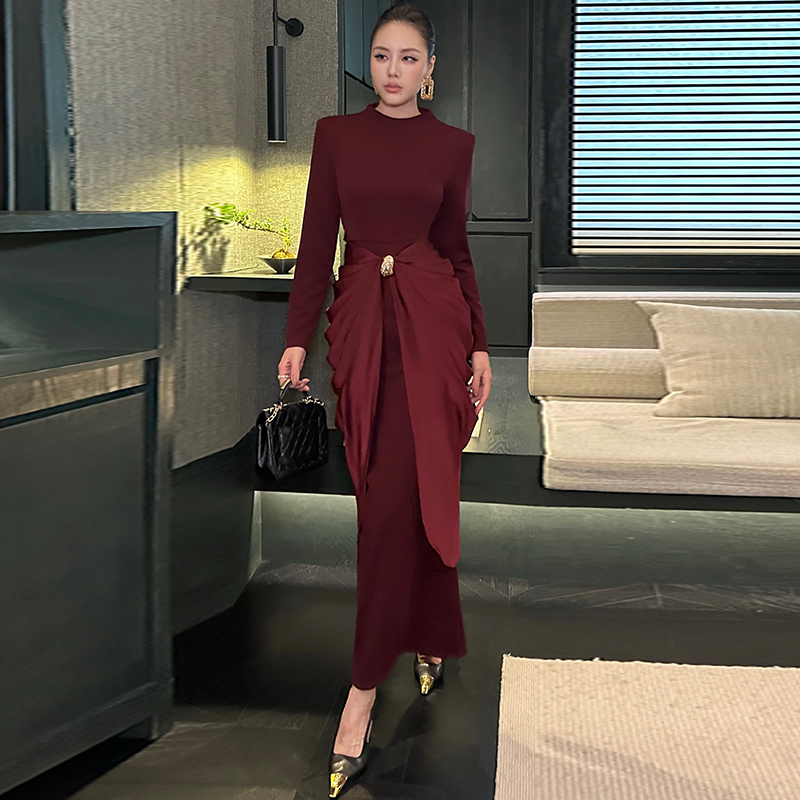 设计感修身显瘦拼接包臀后开叉法式正式场合端庄连衣裙女秋冬新款