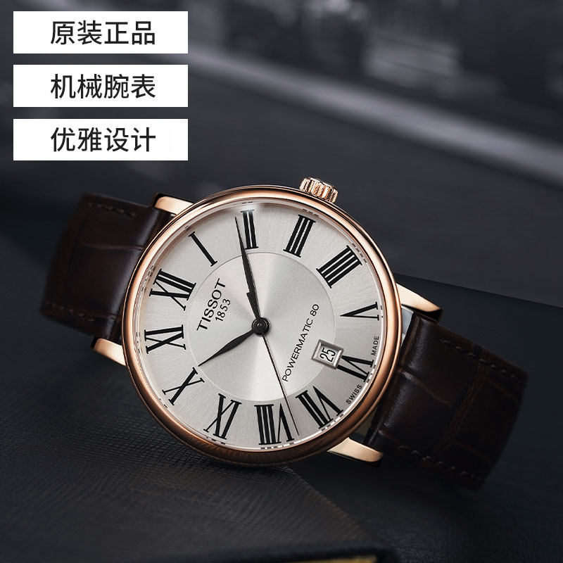 【自营】TISSOT天梭表卡森臻我系列男表皮带机械手表瑞士正品腕表