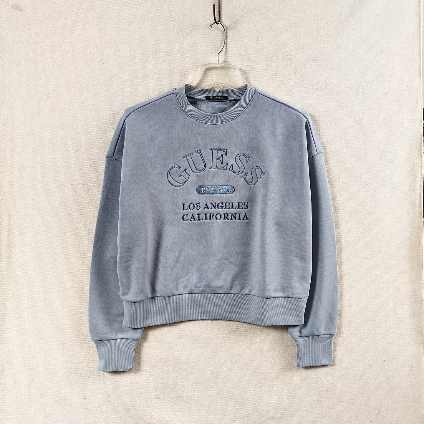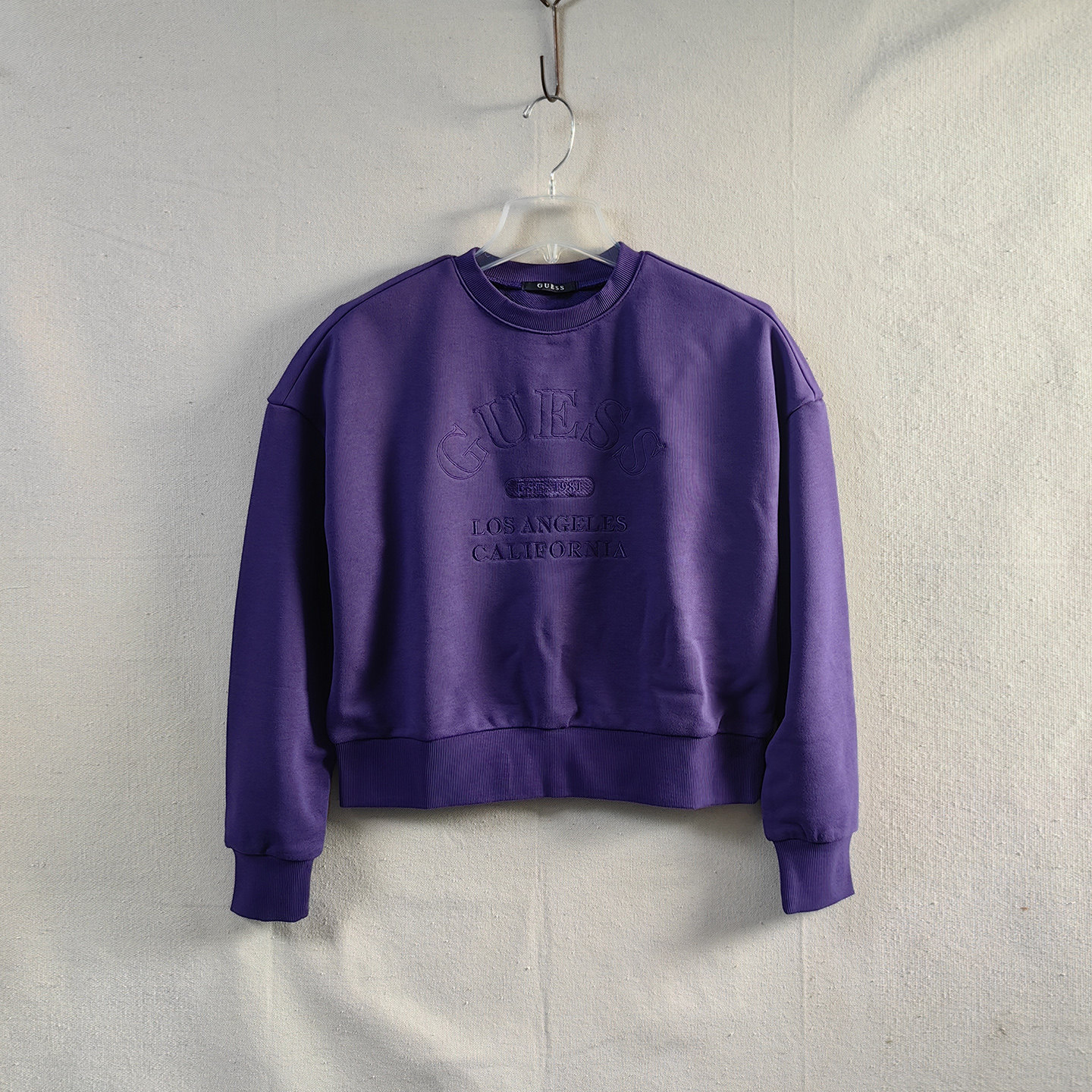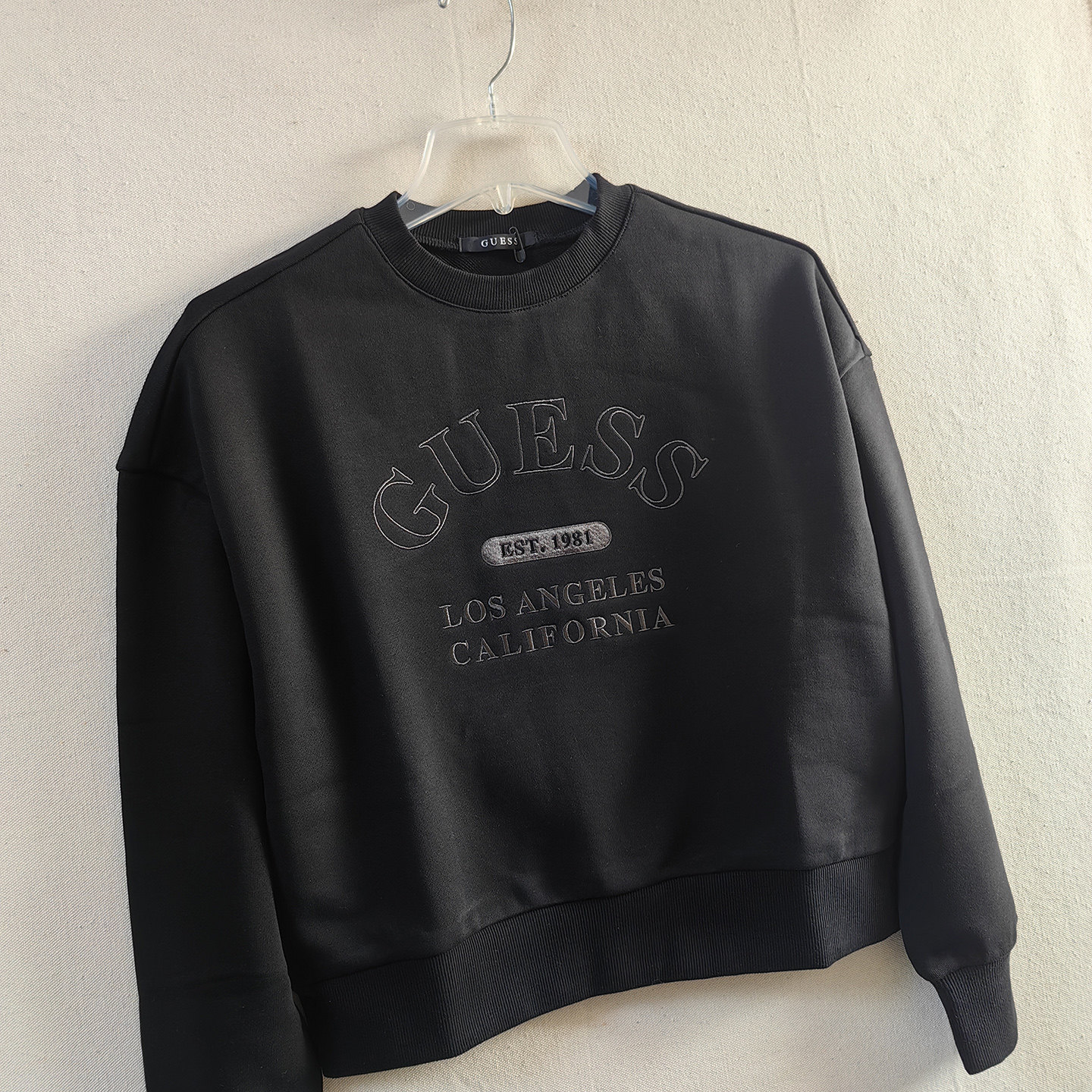 落肩女士休闲圆领衫 秋冬毛圈宽松短款齐腰卫衣 LOS ANGELES 刺绣