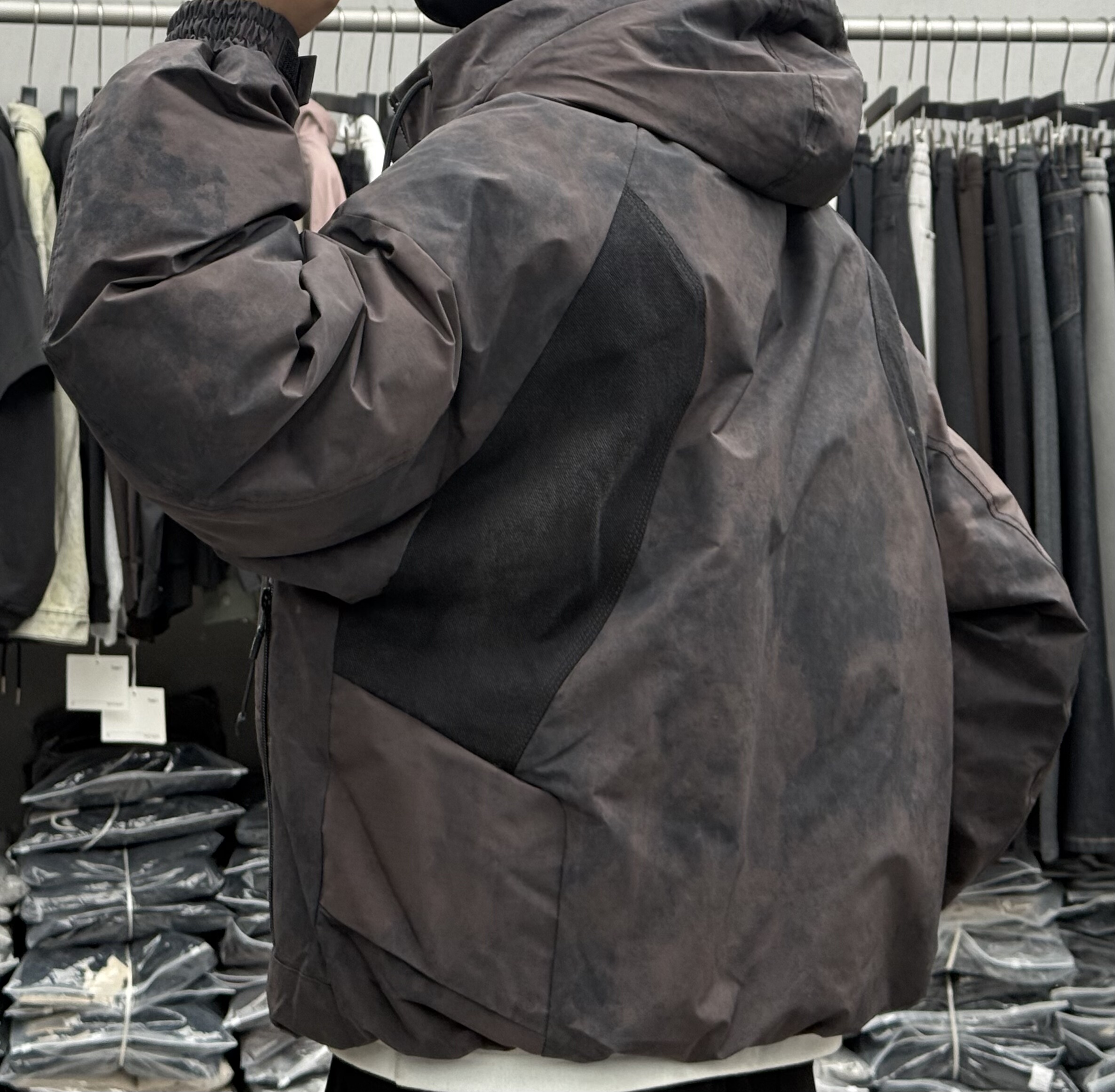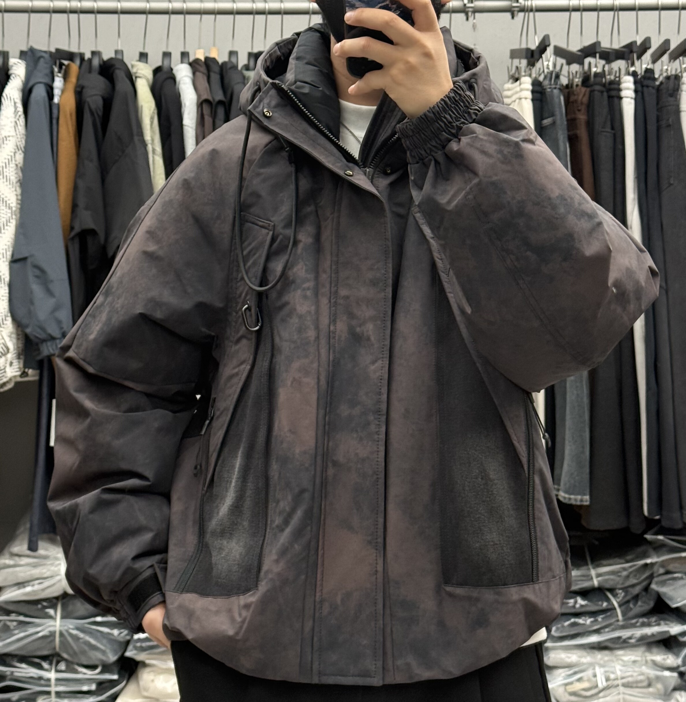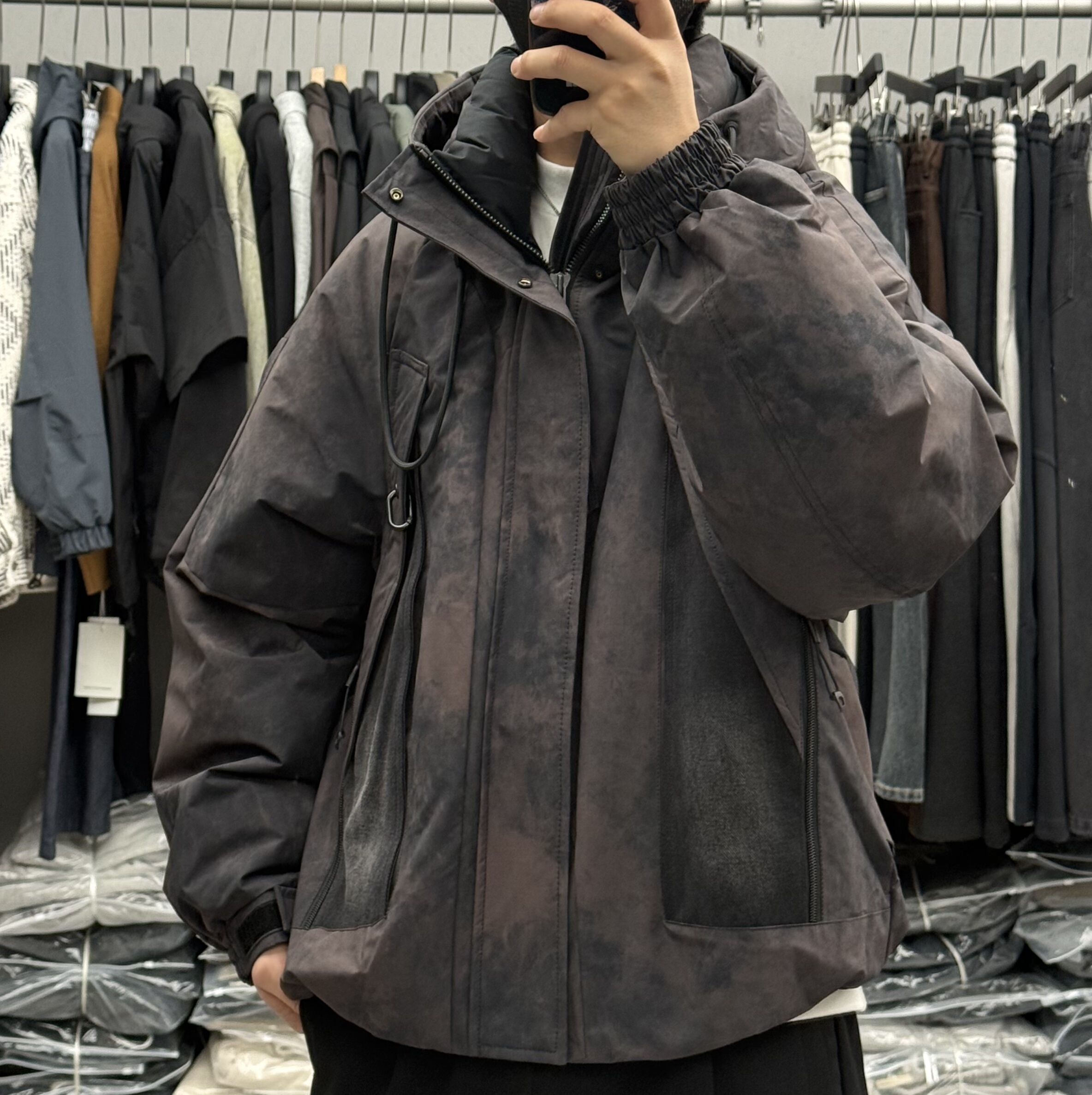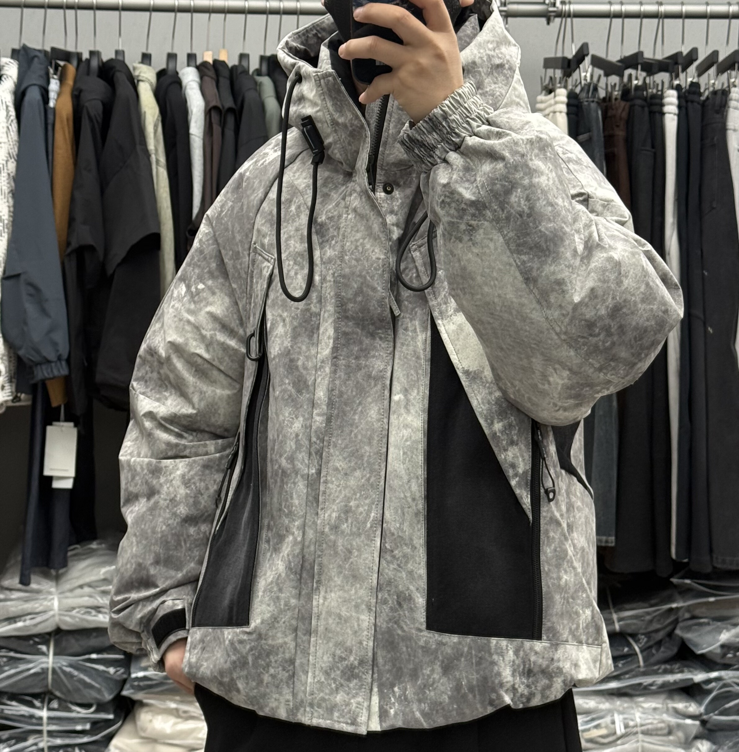 潮牌扎染雪山迷彩做旧连帽羽绒服男士冬季户外加厚90白鸭绒冲锋衣
