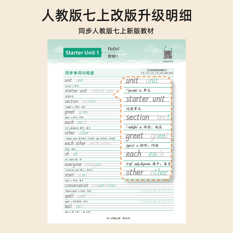 25新人教版初中英语字帖初中生衡水体专用七八九年级上下册练字帖七年级英文听写本默写本单词短语句子描红译林版新版满分书写同步
