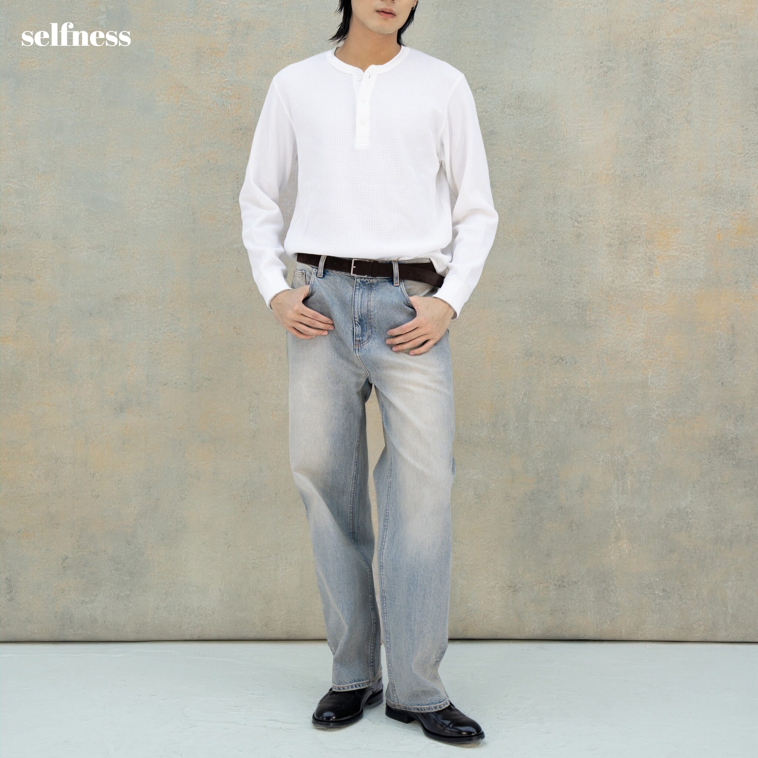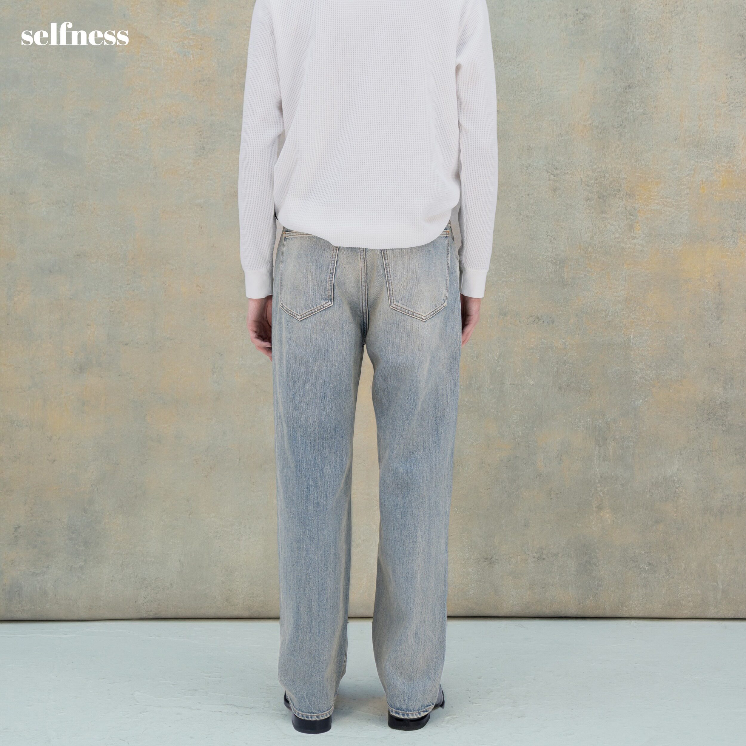 Selfness Kaihara日产冈山面料Riri拉链石磨水洗做旧直筒男牛仔裤