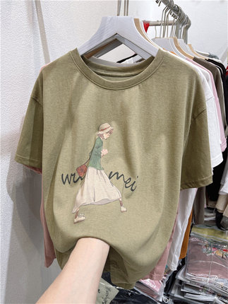 2024夏装新款韩版百搭t恤宽松显瘦女孩印花雪花棉圆领短袖上衣潮