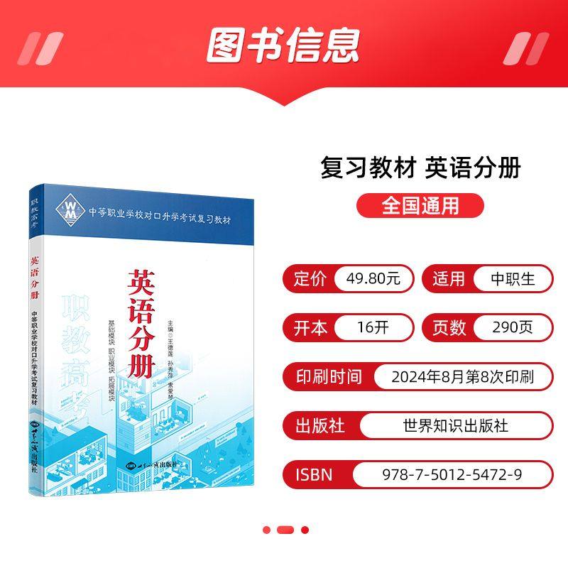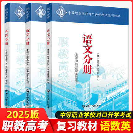 正版中等职业学校对口升学考试复习教材 语文数学英语分册共3本中职考高职职高对口升学高考复习新教材基础职业拓展模板