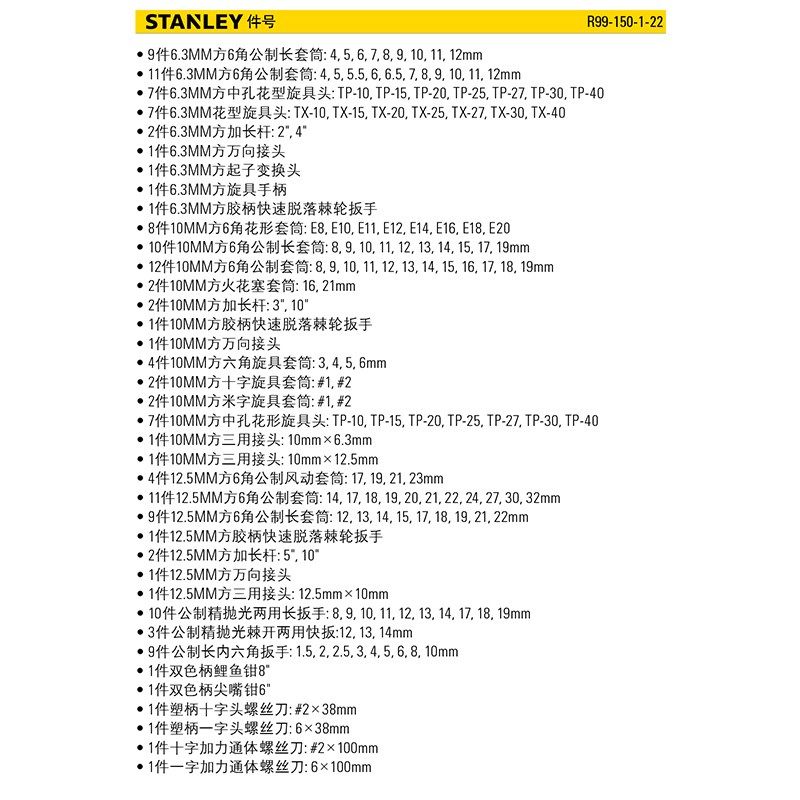 史丹利进口150件套汽修工具套装汽车维修套筒扳手大全汽保工具箱