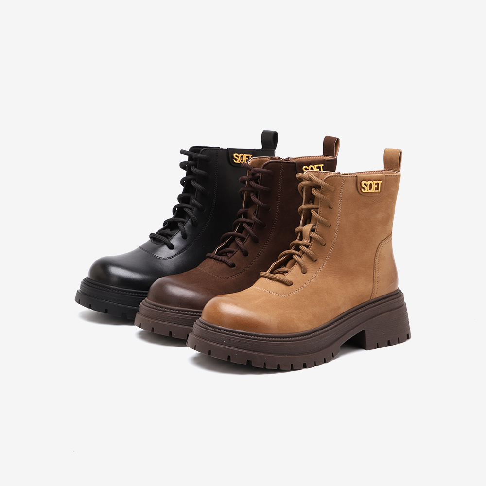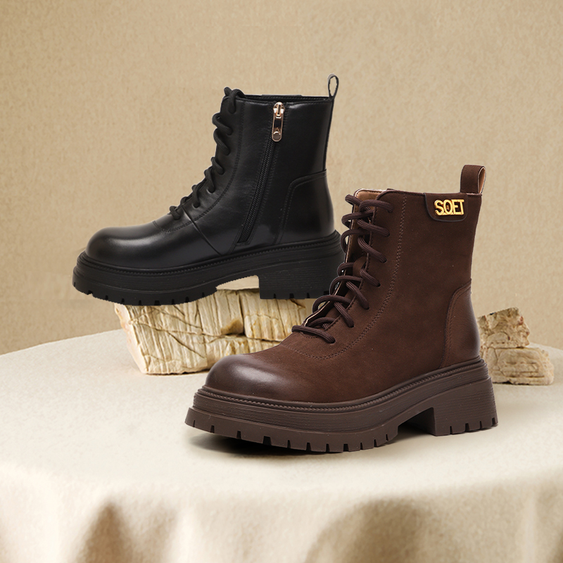 百思图冬季新款商场同款户外运动马丁靴粗跟女短靴ULT03DD4