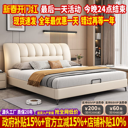 意式轻奢真皮床北欧双人床实木现代简约高端大气床主卧头层牛皮床