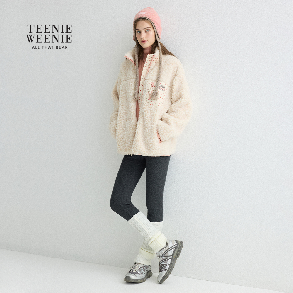 TeenieWeenie小熊女装卫衣2025秋新款碎花灯芯绒拼接仿羊羔毛外套