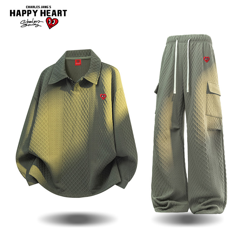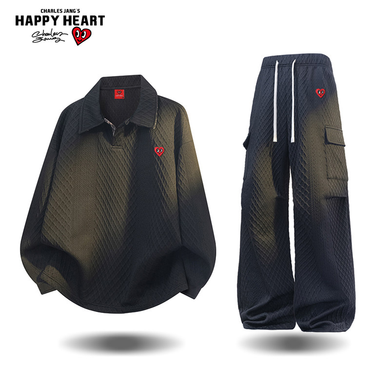 查尔斯桃心 套装男女春秋季翻领提花肌理长袖卫衣休闲长裤两件套