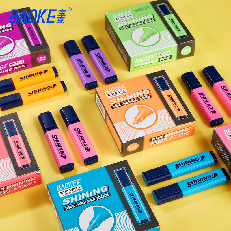 宝克MP4904荧光笔记号笔学生用斜头彩色笔办公学习用品划重点七色