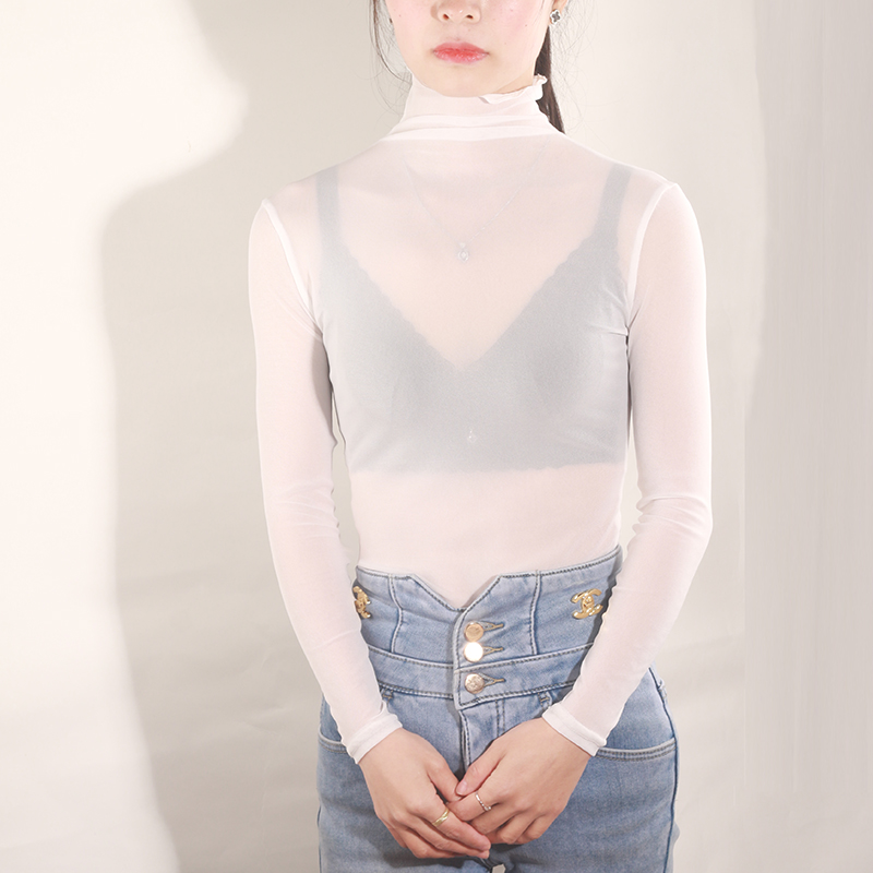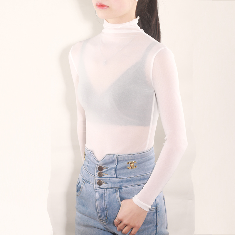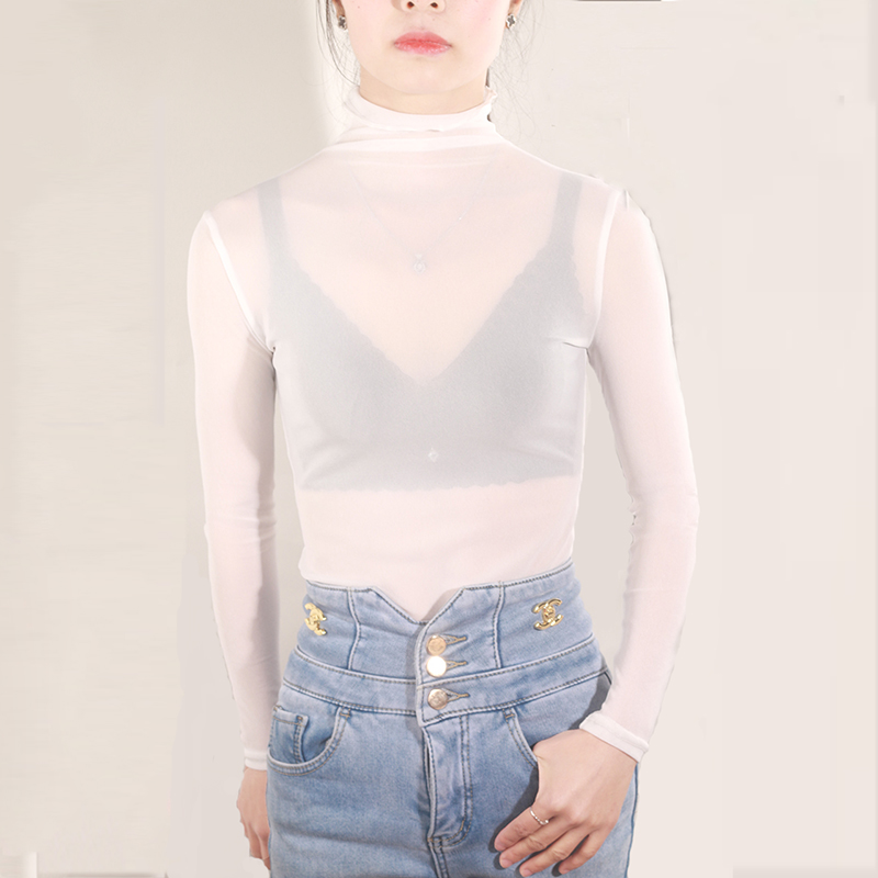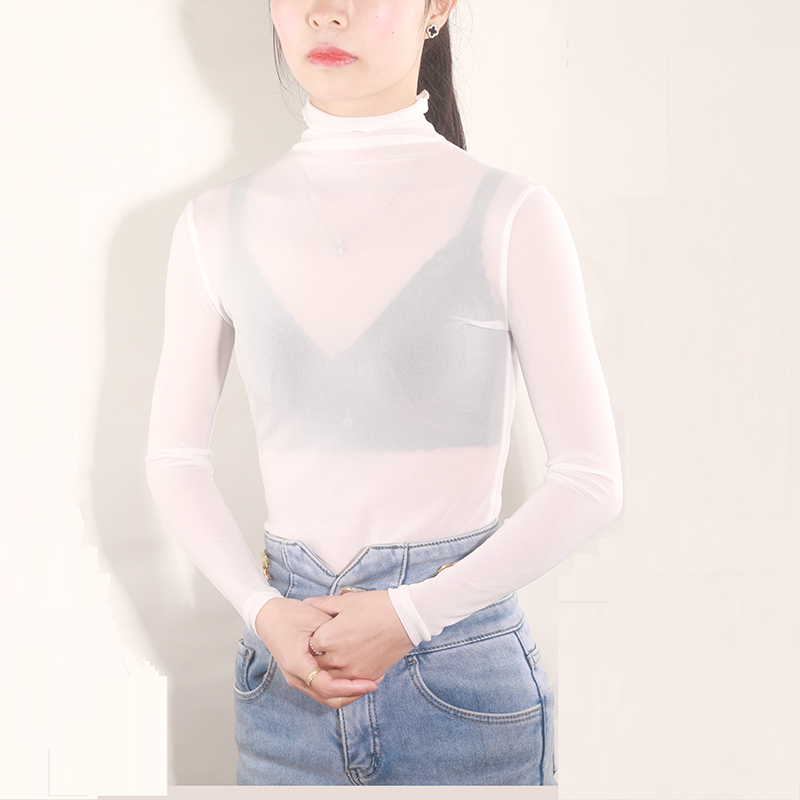 高领网纱打底衫女夏薄款沙罩衫内搭纱衣透视洋气内衬长袖网纱上衣