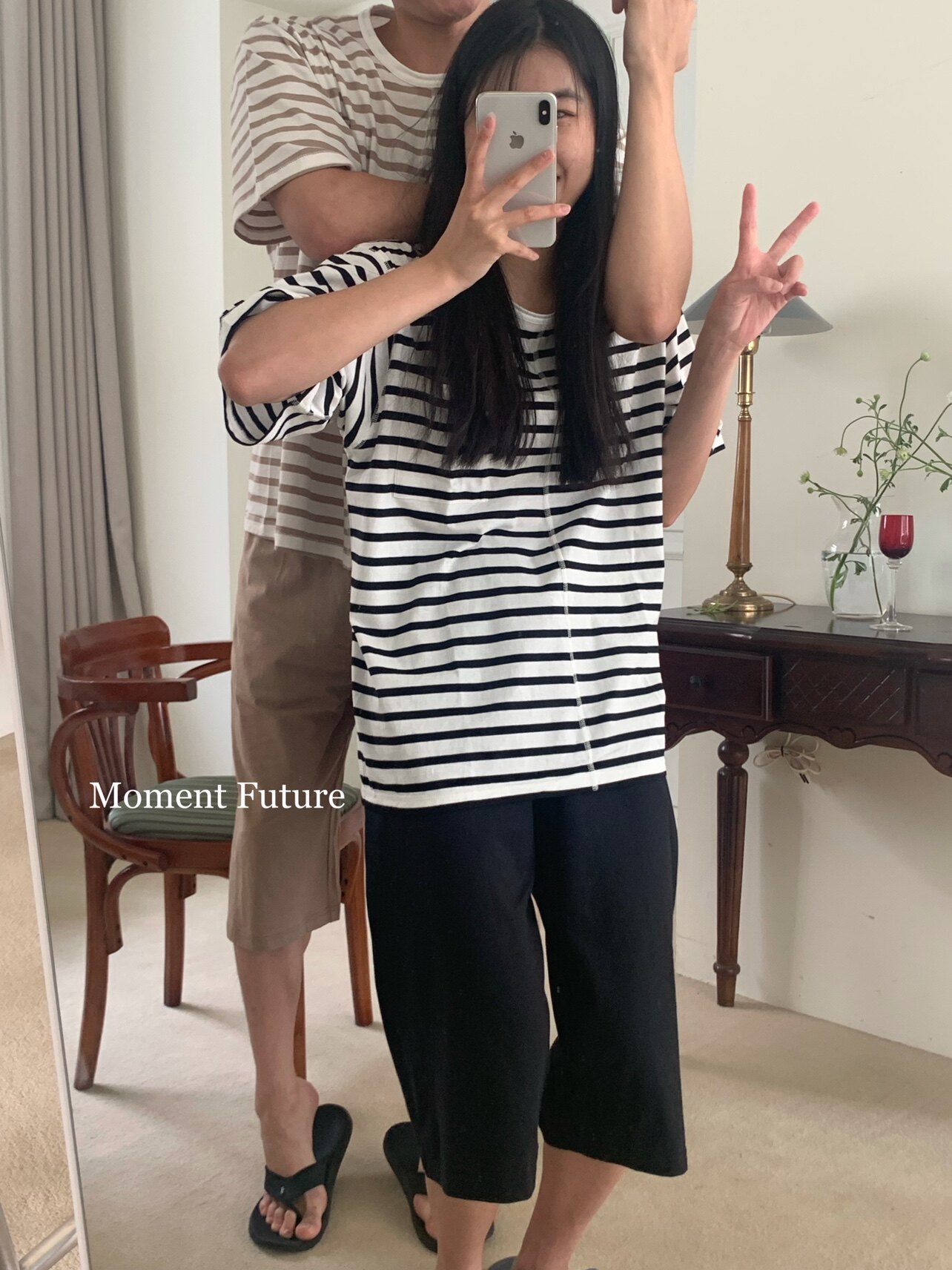 Moment Future夏季睡衣日式条纹简约韩系舒适男女家居服情侣睡衣