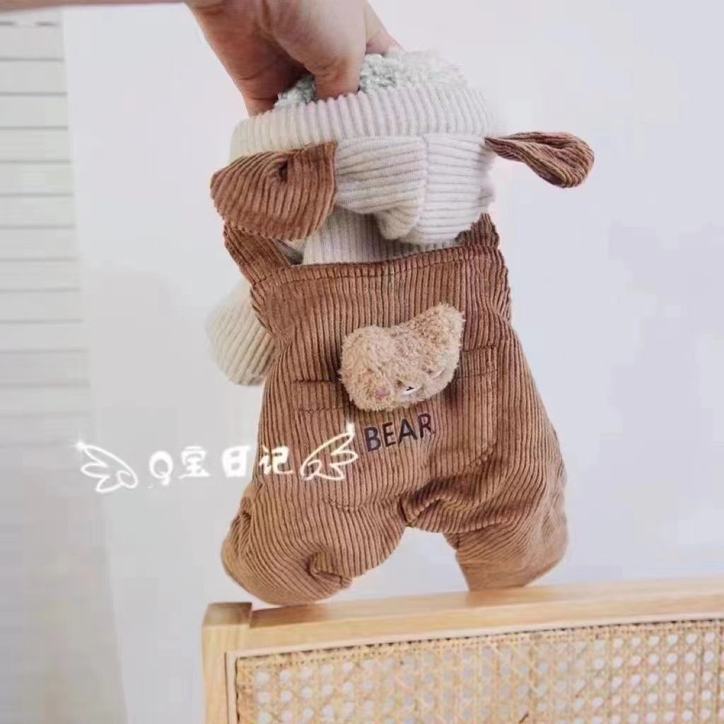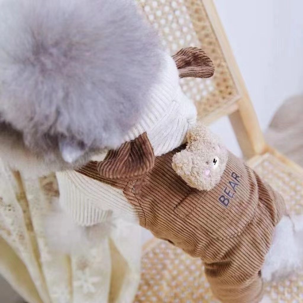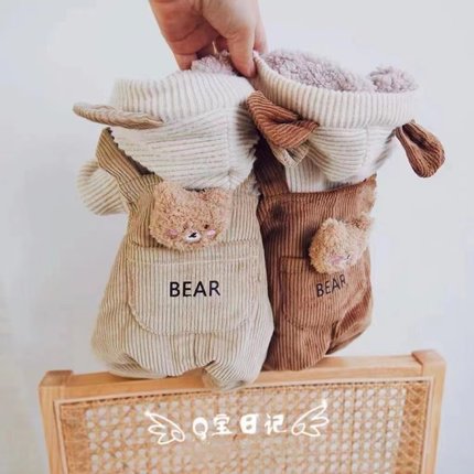 宠物比熊小型犬泰迪狗狗衣服秋冬装冬季棉衣灯芯绒小熊背带四脚衣