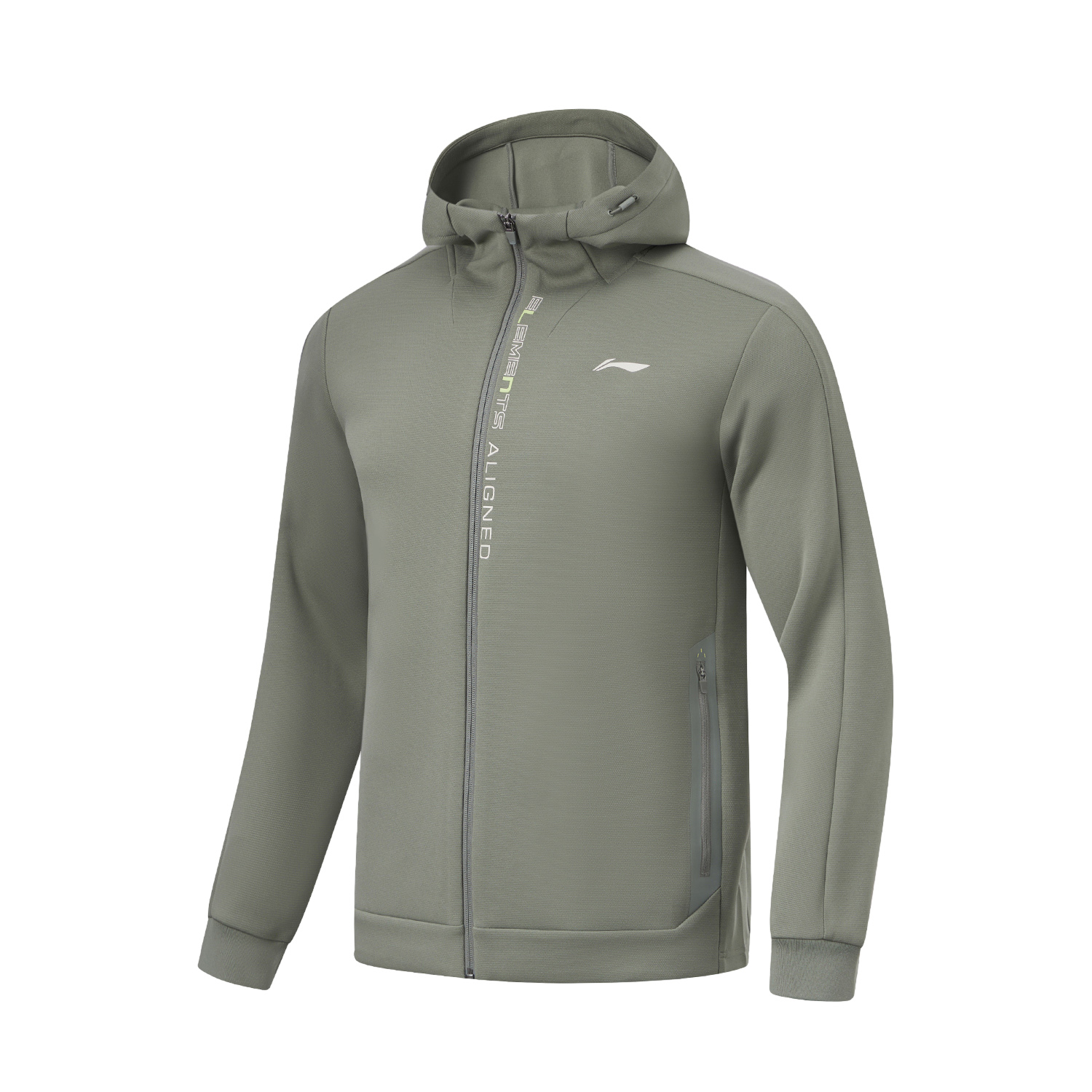 李宁正品健身系列男子弹力运动休闲拉链连帽开衫卫衣AWDU067-4