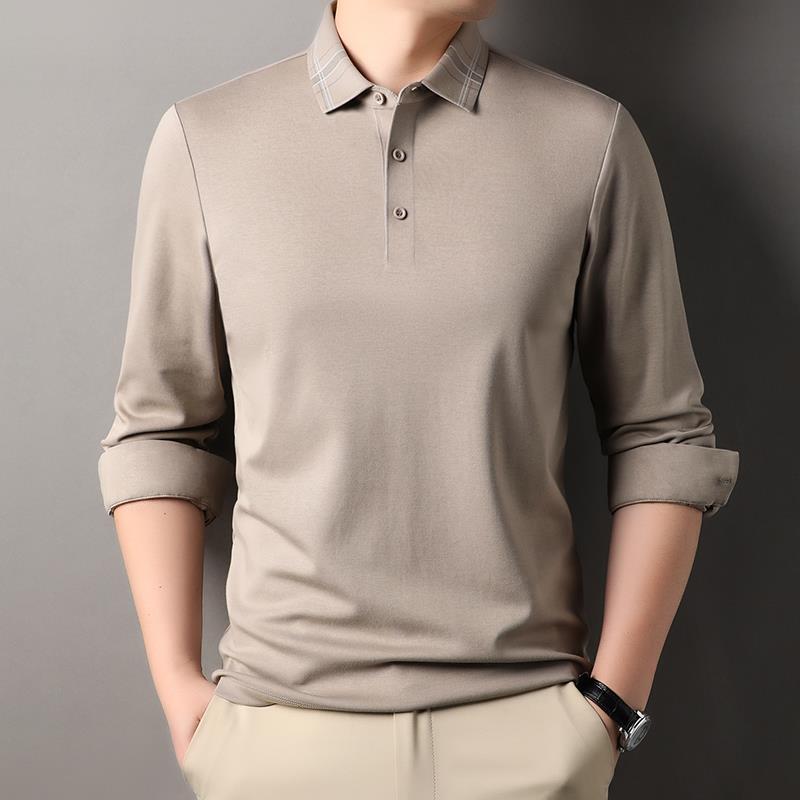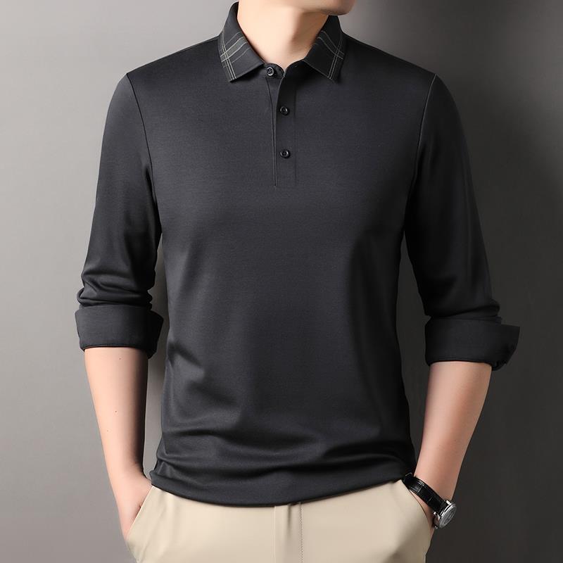 秋冬2025商务休闲男士翻领色长袖t恤中年爸爸装宽松polo衫1002u