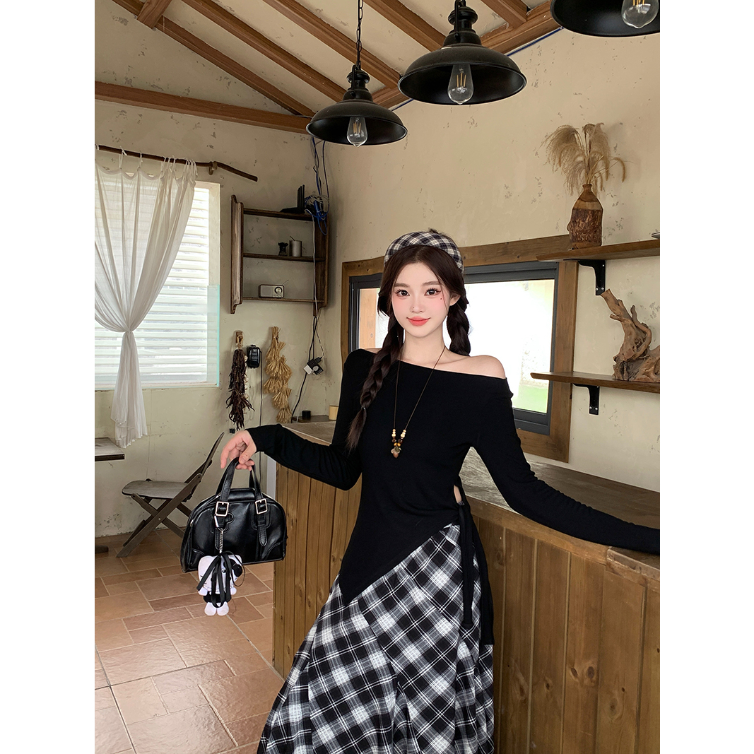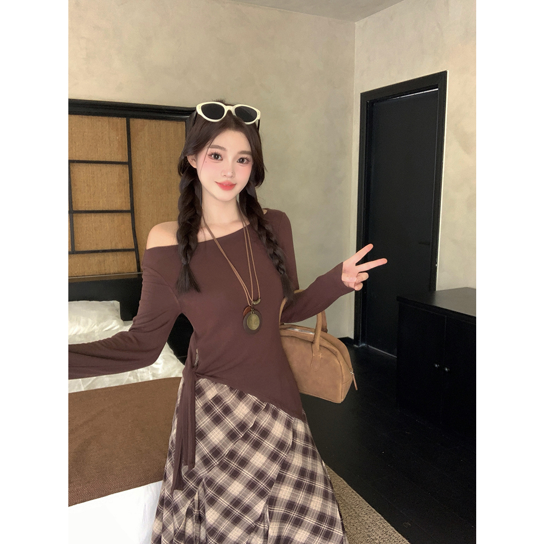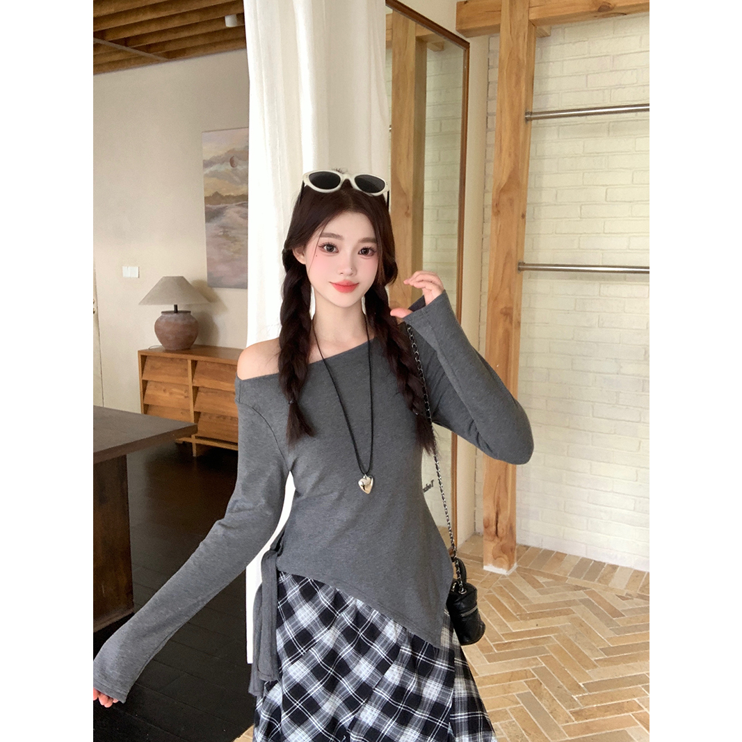 衣之派2025秋装新款胖mm大码女气质优雅露肩不规则绑带长袖上衣