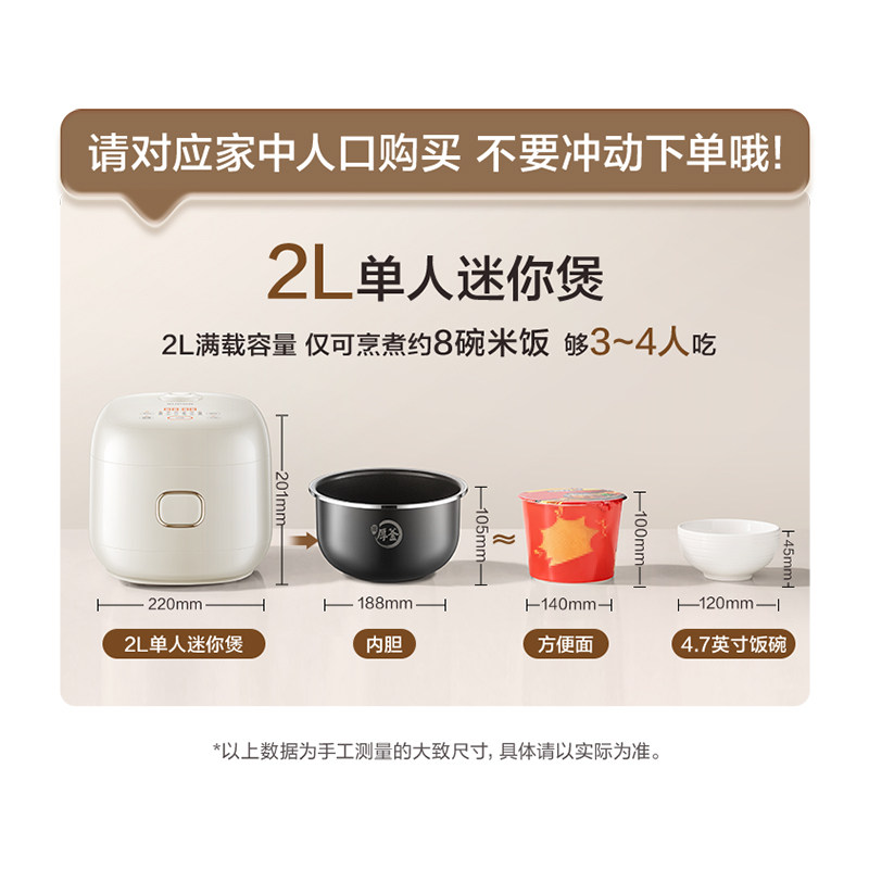苏泊尔电饭煲家用2L小容量IH电磁加热多功能不粘智能预约煮饭锅
