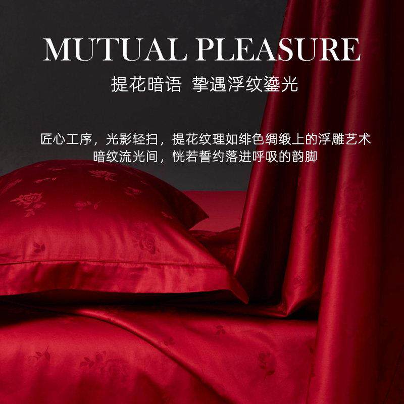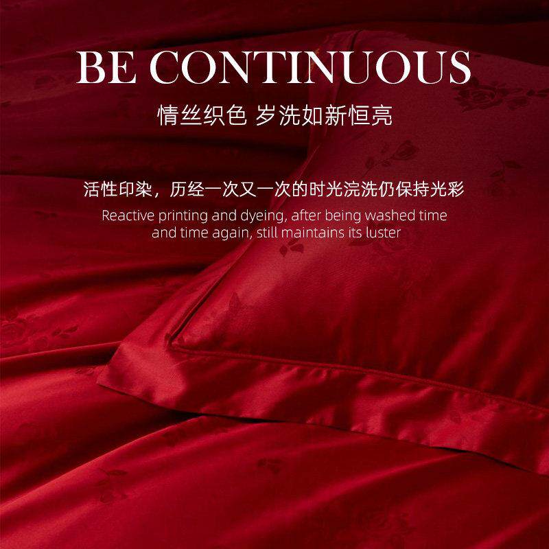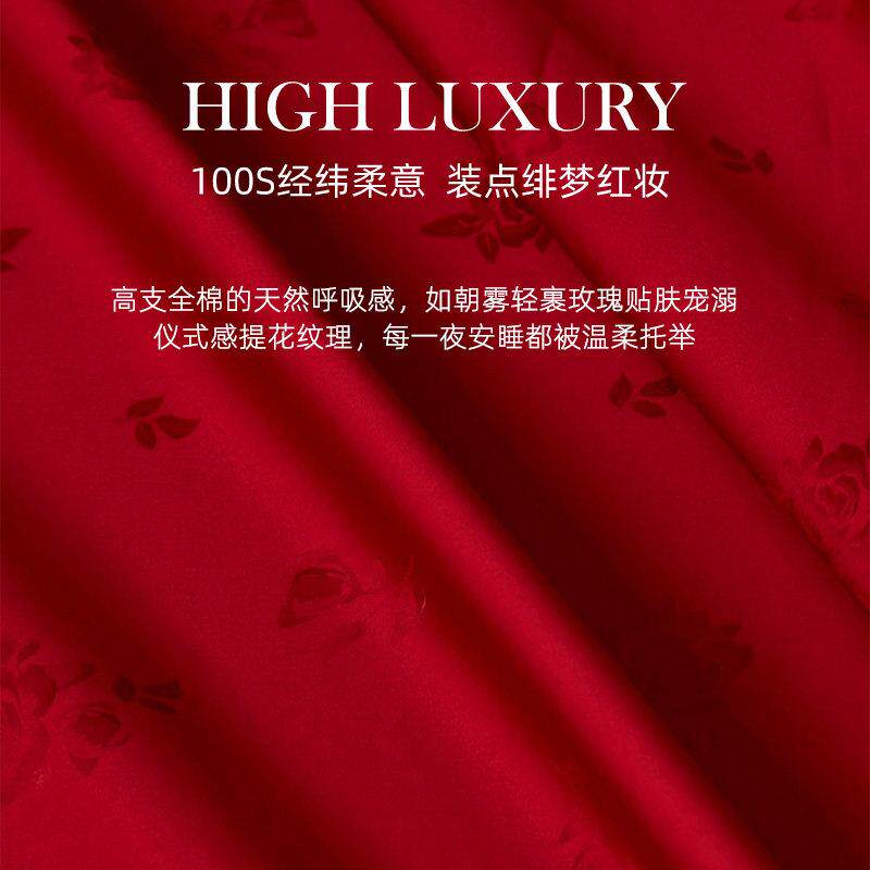 斯得福100S长绒棉全棉红色结婚四件套喜庆床品床单被套婚庆套件