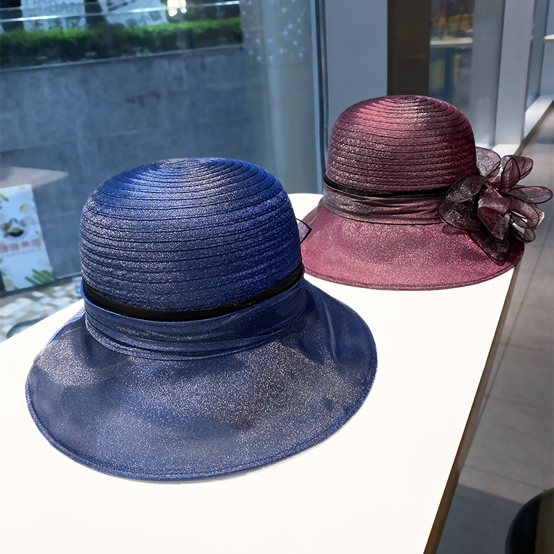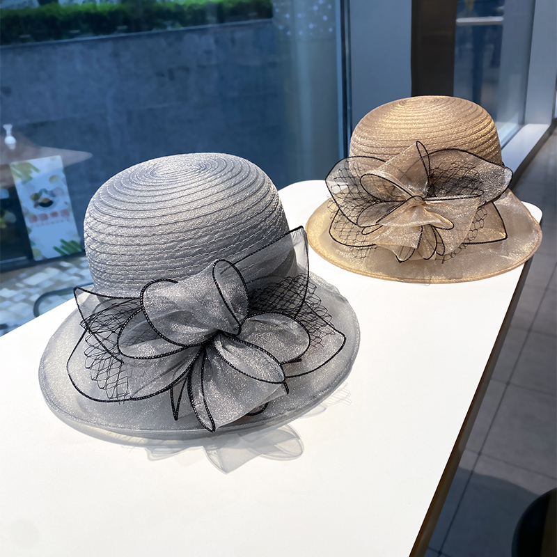 新款欧根纱帽子时尚花朵礼帽女夏季遮阳防晒渔夫帽气质优雅太阳帽