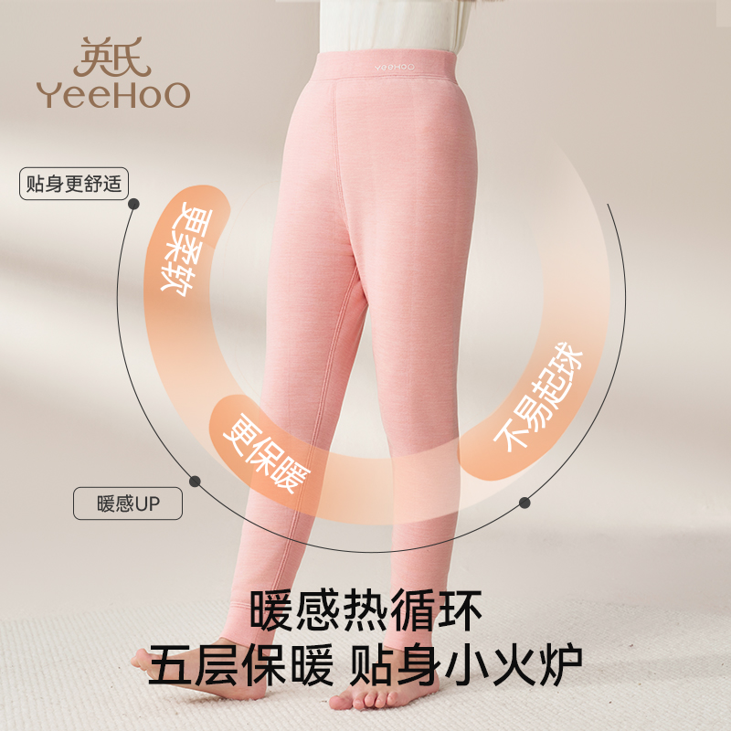 英氏儿童裤子五层加厚羊毛秋冬男童女童束脚保暖裤东北校服神器