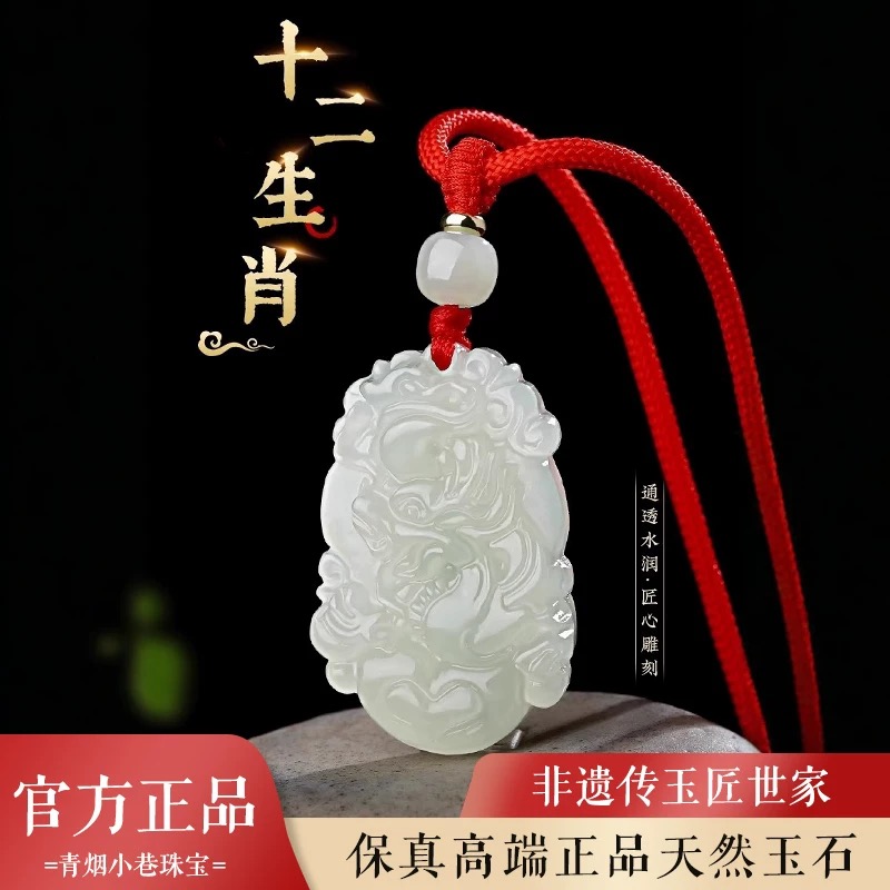 天然玉石十二生肖吊坠本命年马羊猴鸡狗猪挂件项链玉佩玉坠男女款
