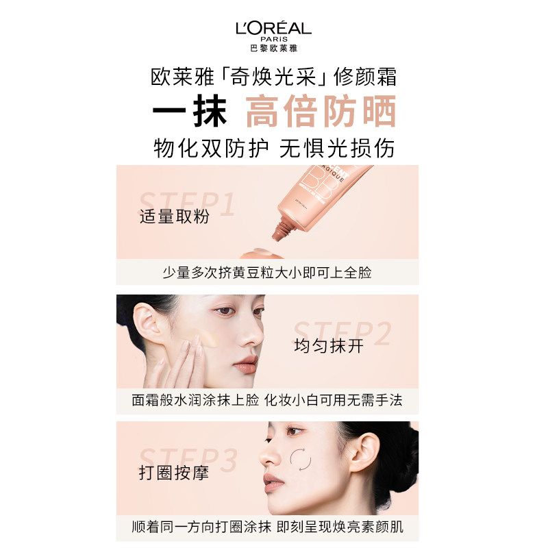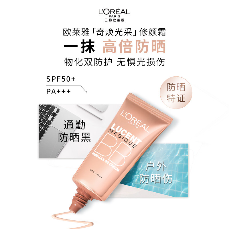 欧莱雅修颜bb霜遮瑕素颜霜持久保湿妆前乳粉底液高倍防晒官方正品