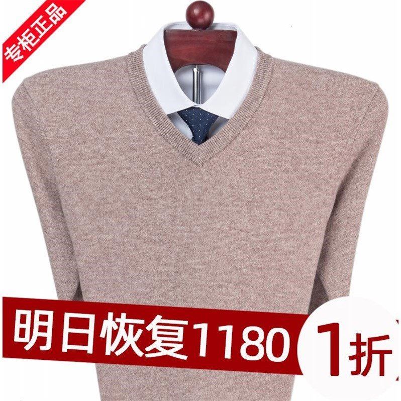 鄂尔多斯市羊绒衫男冬季加厚V领毛衣中年鸡心领爸爸装打底羊毛衫