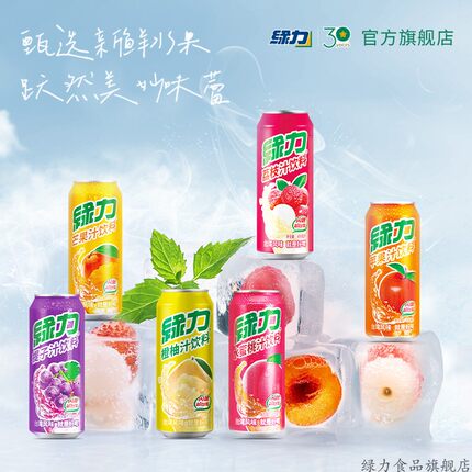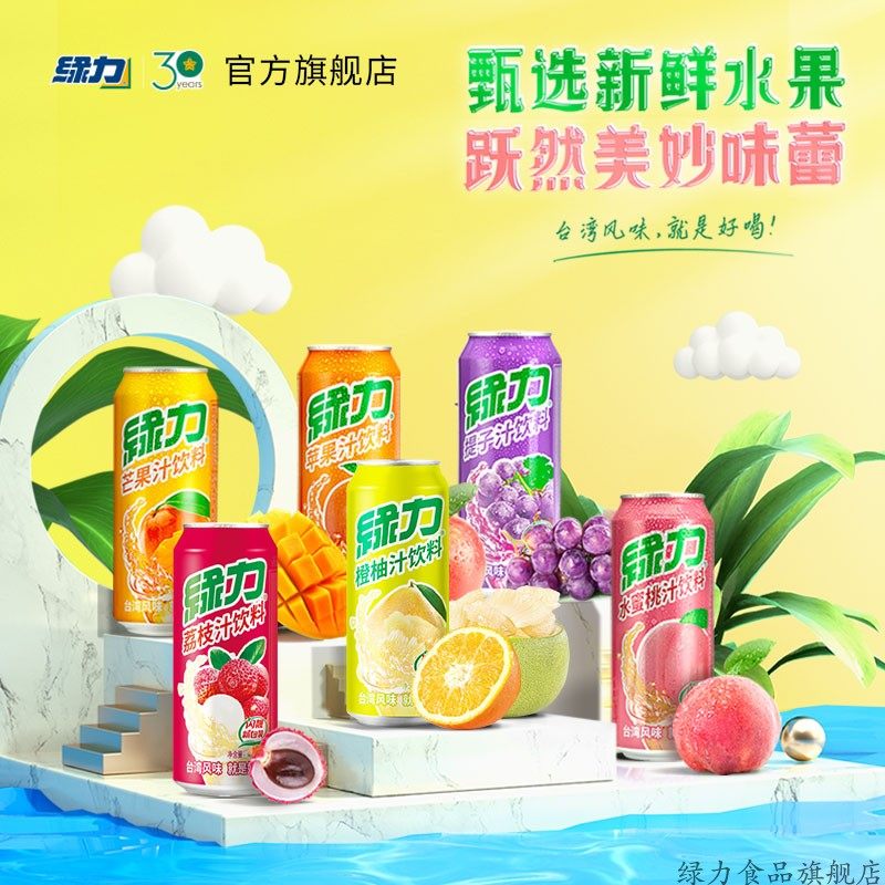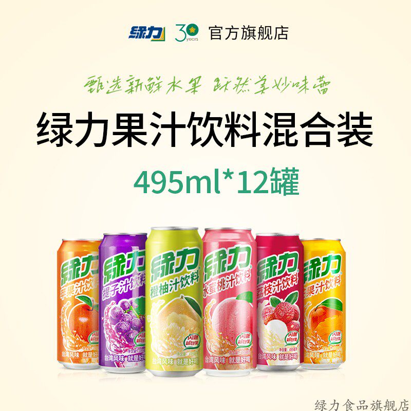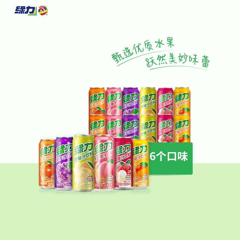 绿力荔枝汁芒果汁蜜桃汁提子汁苹果汁橙柚汁饮料6种口味12罐箱装